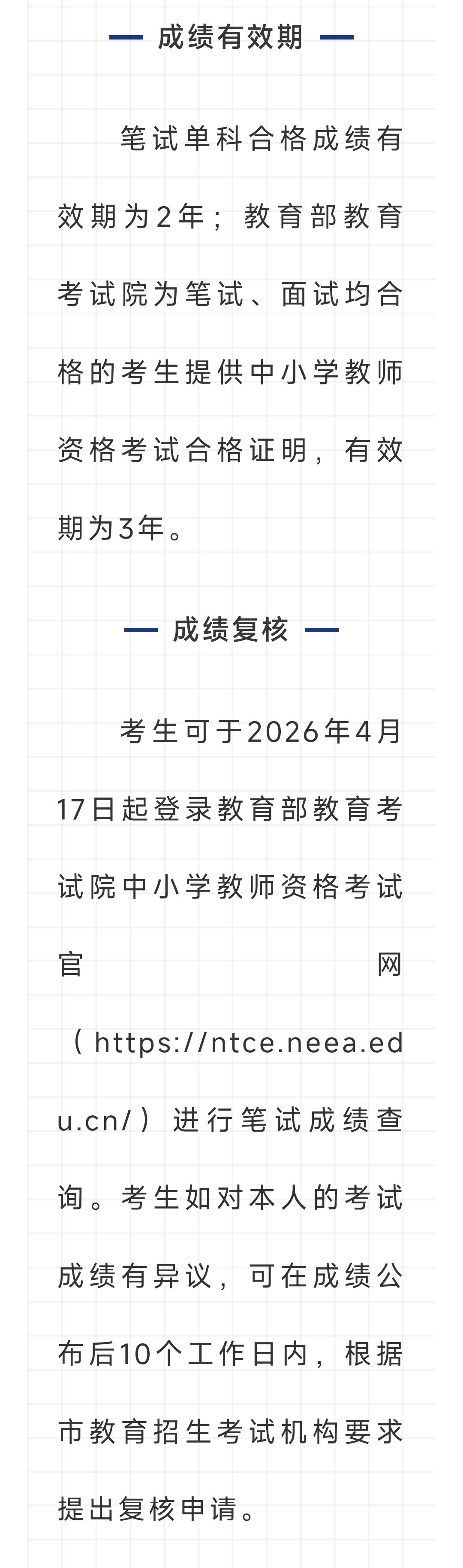 2026年上半年中小学教师资格考试笔试成绩4月17日上午10点可查