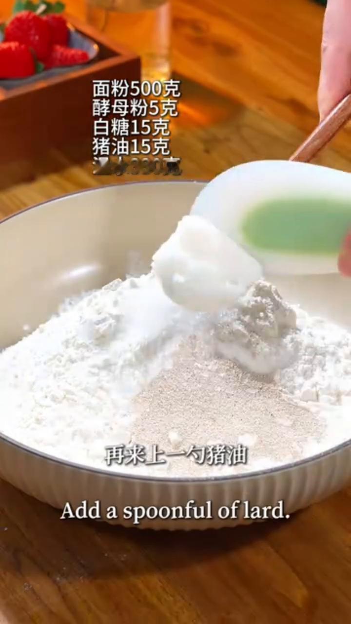 ·1、白糖,猪油不喜欢可不放,最好用温水发面快(嫌太软不好操作,水)。