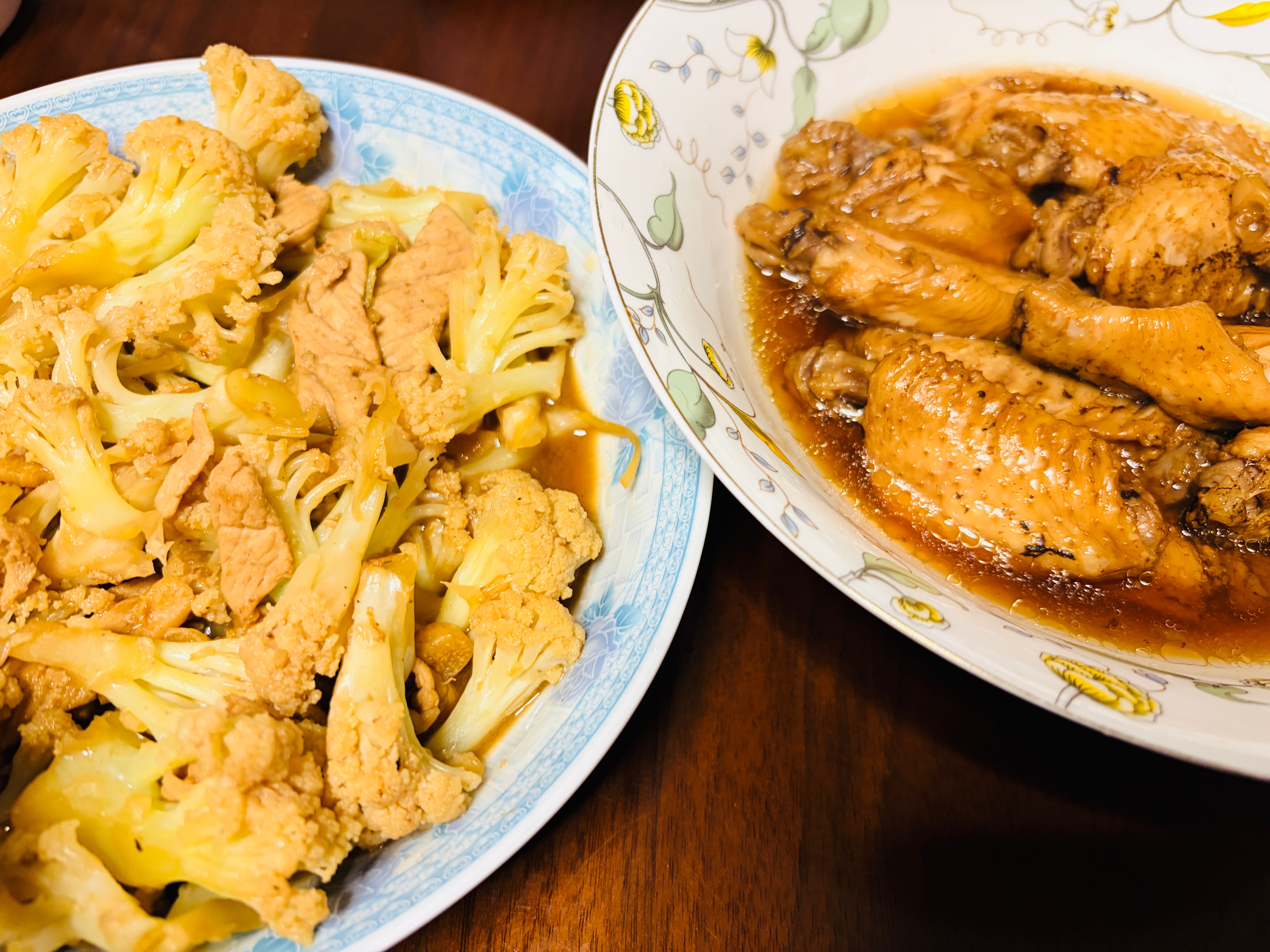 两道新菜,花菜炒肉+可乐鸡翅,再给娃做个拼碗