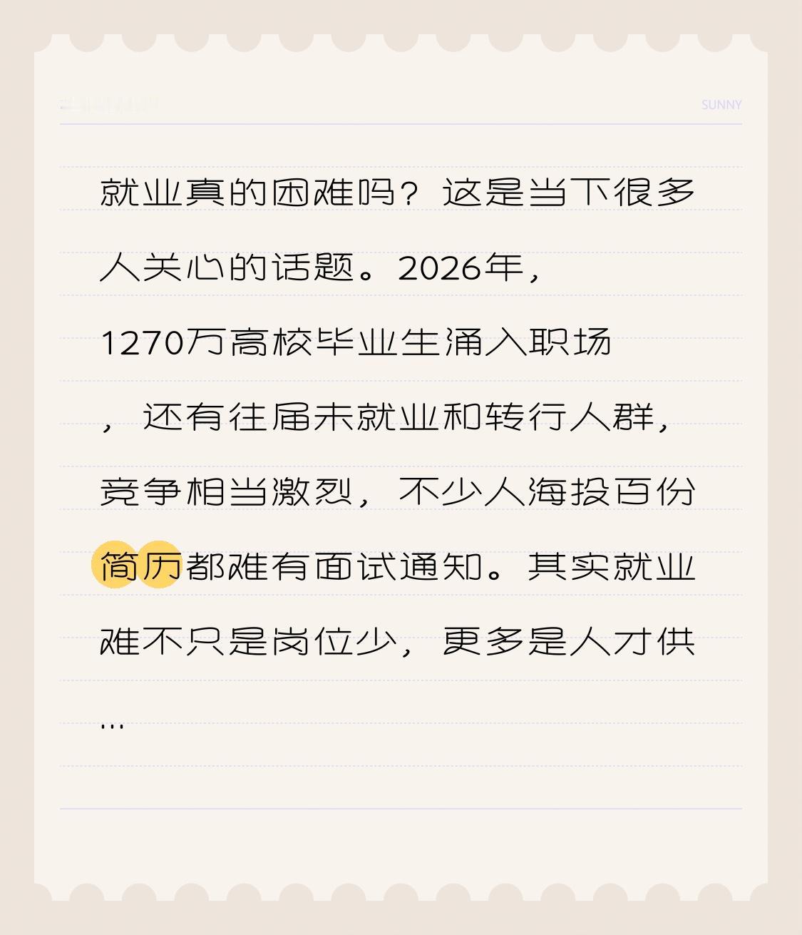 就业真的困难吗?这是当下很多人关心的话题。2026年,1270万高校毕业生涌入职场,还有往届未就业和转行人群,竞争相当激烈,不少人海投百份简历都难有面试通知。