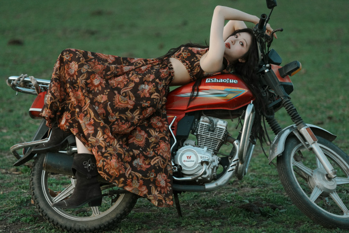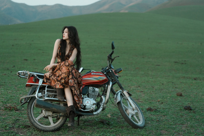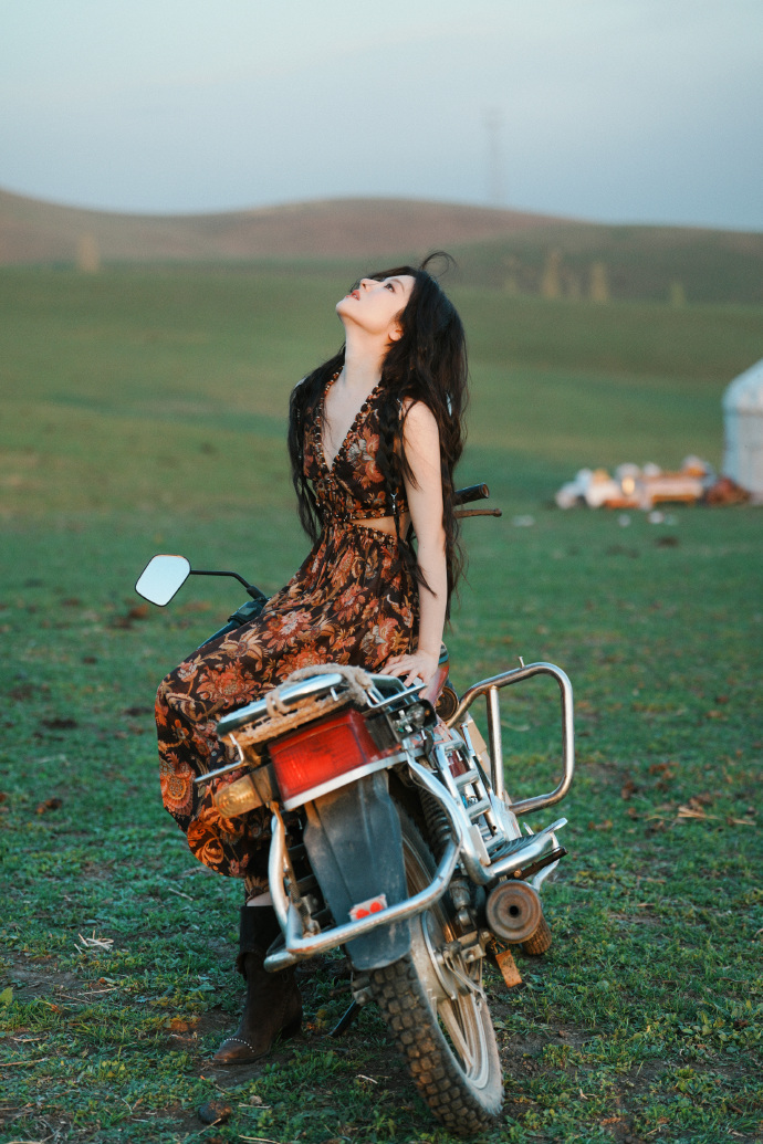 李兰迪草原机车大片李兰迪在草原骑机车 谁能想到李兰迪和机车的适配度这么高!草原旷野里她靠在机车上的样子,又美又飒,完全是逃离城市的自由少女,太有故事感了! 李兰迪