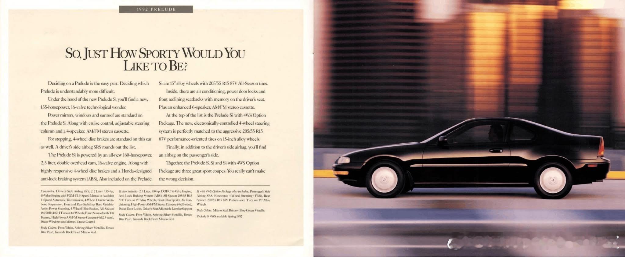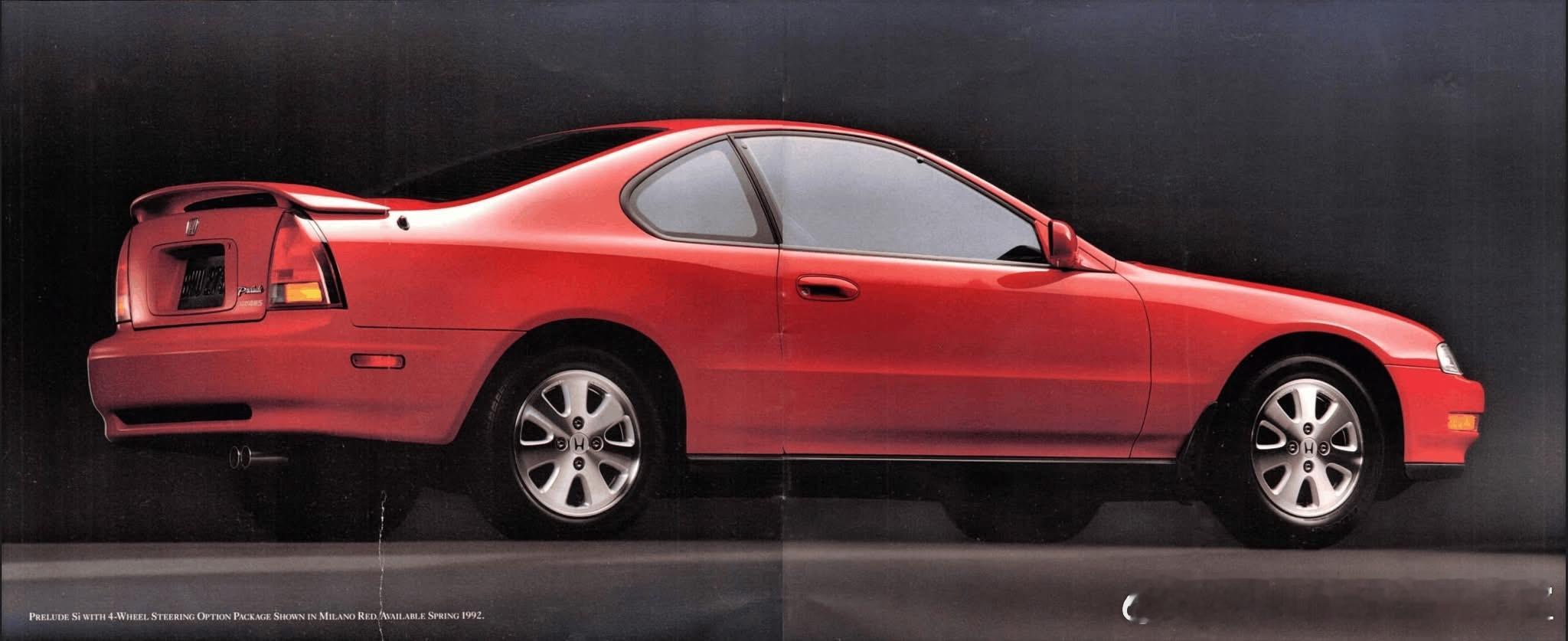 1992款本田 Prelude彼露(第四代),1991年底推出,1992—1996年销售(底盘代号 BB1–BB4),彼露为本田前置前驱双门轿跑,NSX 之前的旗舰运动车。世界首创量产四轮转向(4WS),低速时前后轮反向转向,转弯半径更小, 高速时同向转向,变道更稳、操控更准,是当年最先进的民用车转向技术。同时也是本田经典主力 2.2L F22A/B 四缸高转自吸发动机,奠定了本田“自吸高性能前驱”口碑。90年代日系前驱轿跑代表,对标 丰田 Celica、日产 Silvia。 JDM 经典,至今在改装/情怀圈热度很高。