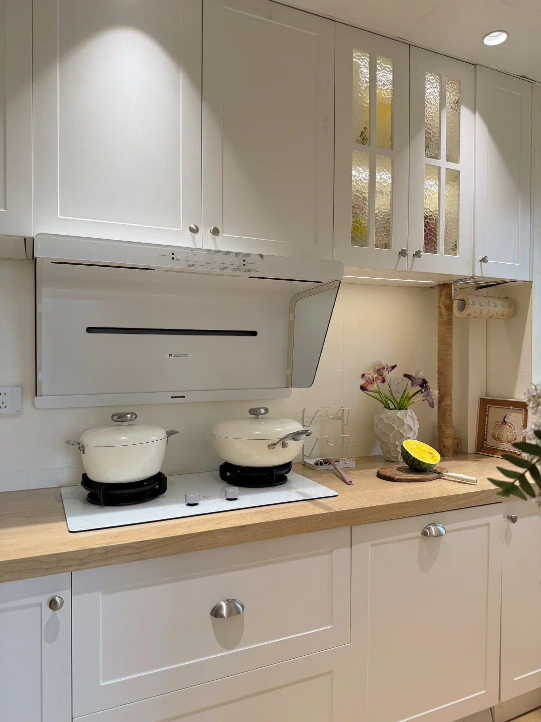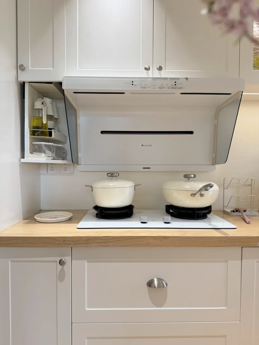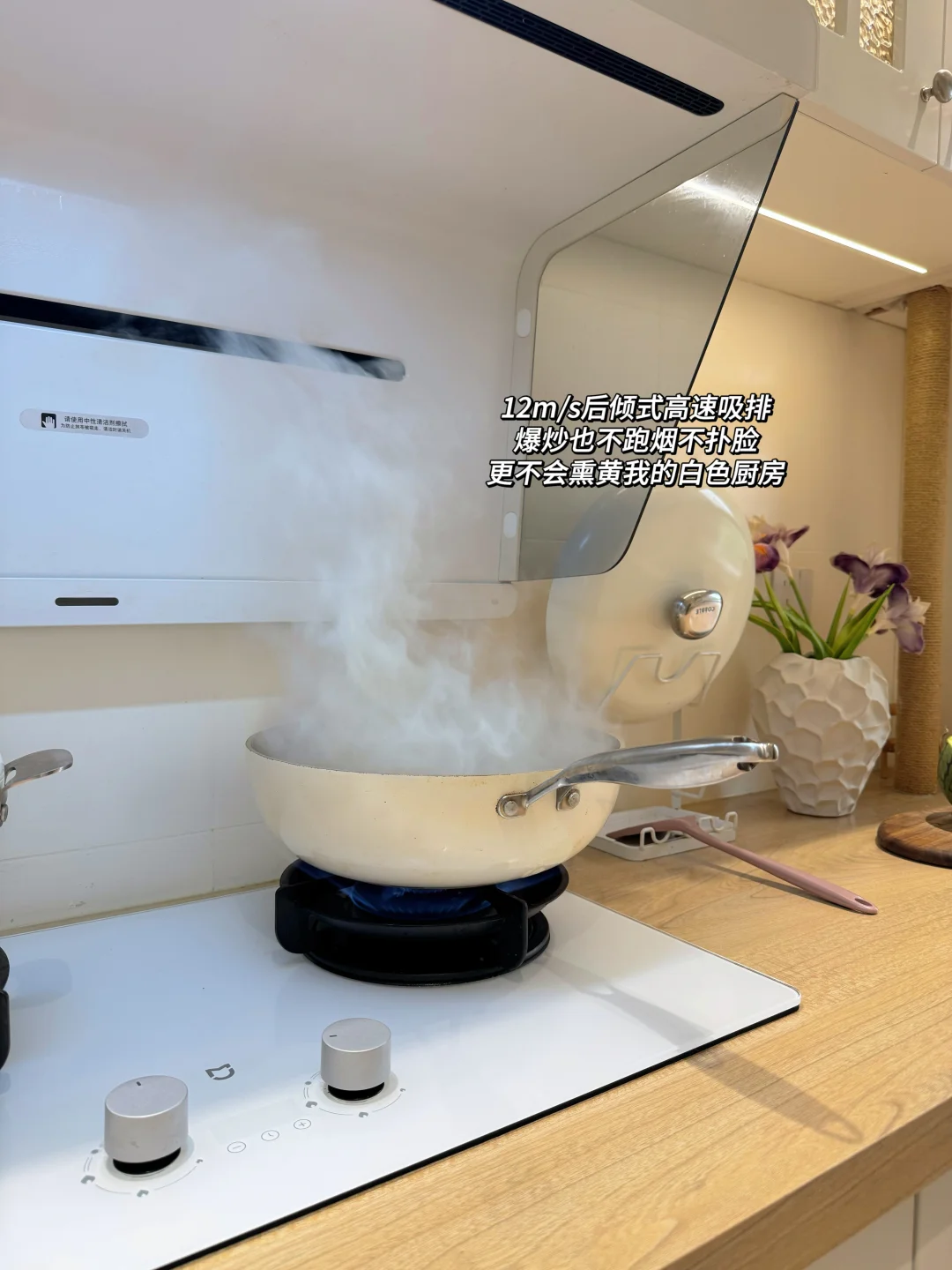 以前用传统油烟机,再勤快也挡不住油烟四处飘散🤦🏻♀️,时间一长,油渍会悄悄沉积在台面缝隙、柜门拉手、甚至调料瓶身上。多亏去年换了米家净烟机S2,现在用了一年多了,无论是厨房还是净烟机都依然清爽——台面不黏、柜门不黄、墙面没油点✅。