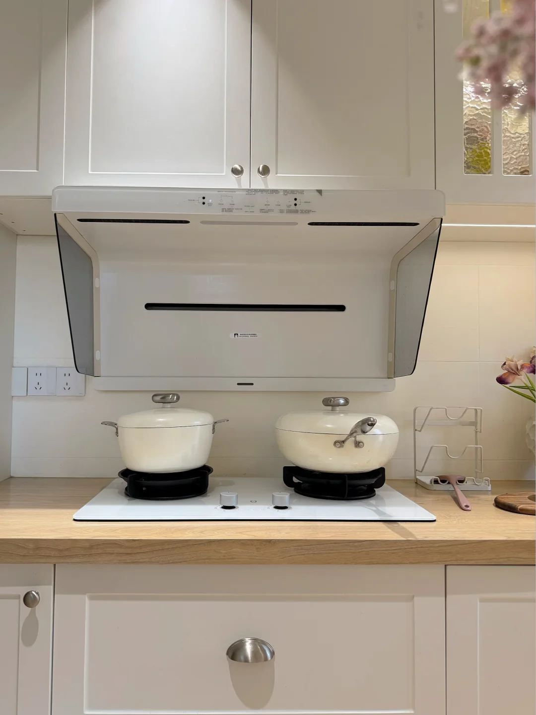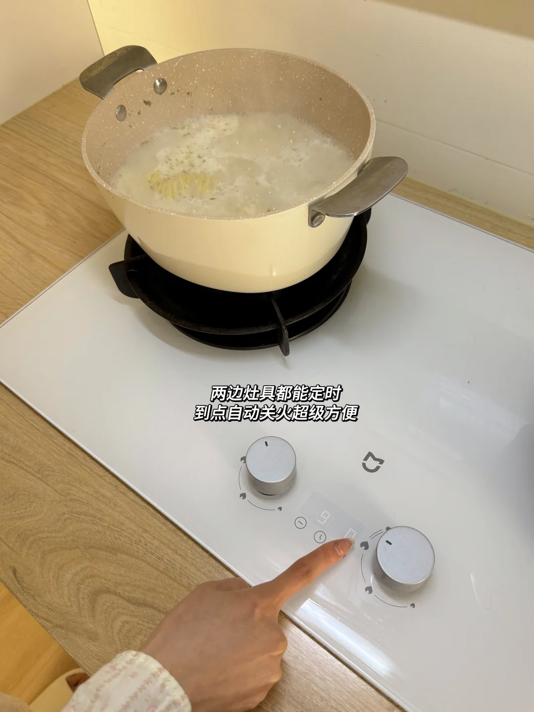 而且它颜值很高、白净百搭,和我的奶油厨房简直太般配了!搭配同套系的米家灶具,不仅火力大还能定时,炖汤🫕设好时间到点自动关火,再也不用一直守在锅边了,太香了。