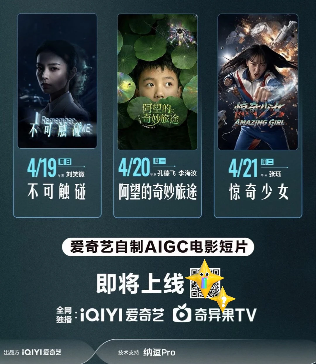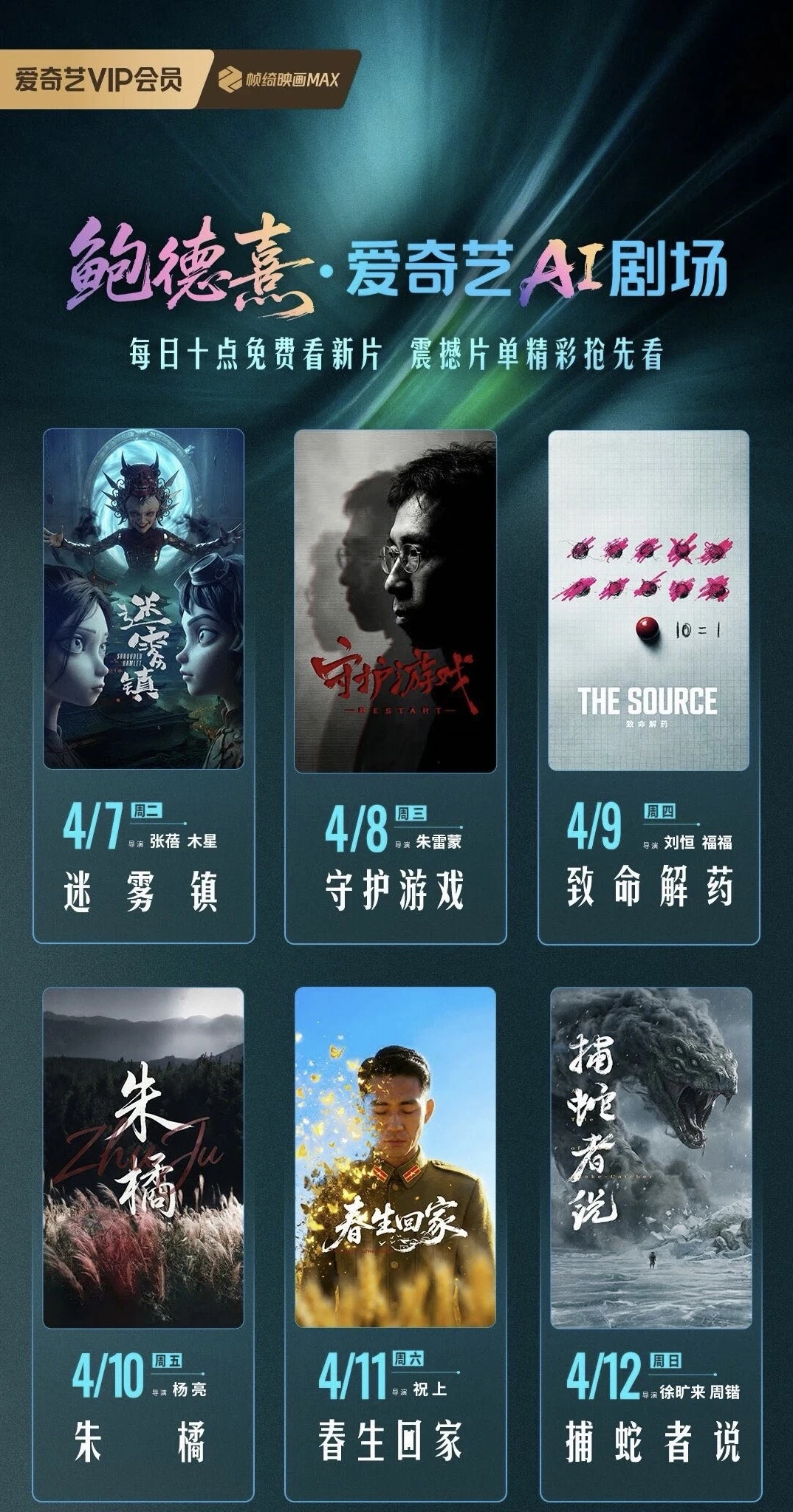从4月7号开始,鲍德熹·爱奇艺AI剧直接开启「日更模式」,一天一部AIGC电影短片,已经上线8部,4月21日前会更完15部!