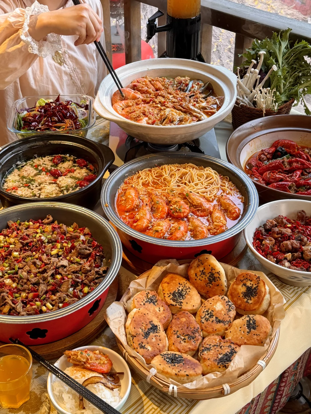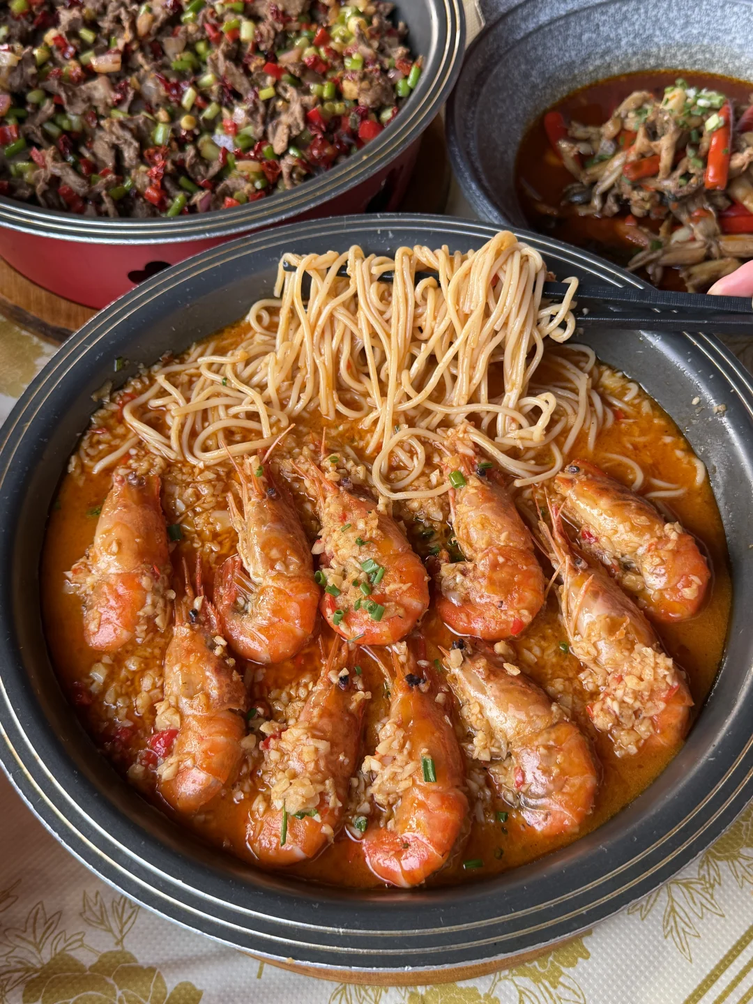 菜品也很实在!!食材品质巨好!!至尊海鲜锅、汆汤雪花牛肉、丽江粑粑、罗氏虾捞面。。。就没有不好吃的