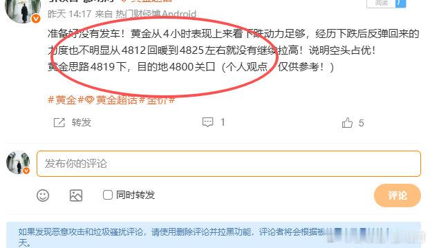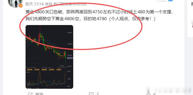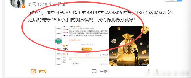 2026.4.15星期三复盘;昨天的行情完全在我们预测的空间中!我们反复高空均有收获,晚间更是提前在4830埋伏布局顺利吃下大空间!同时也是昨天晚间回落的最高位置!共计给出4单,4胜累计590点!第一;4819空,4806走吃下130点第二;4806空,4786走吃下200点第三;4796空,4790走吃下60点第四;4830空,4810走吃下200点