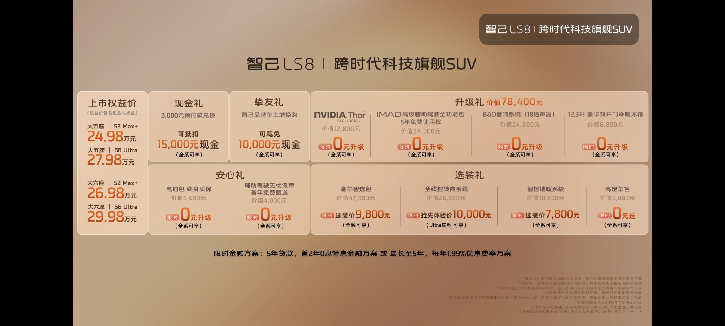 智己LS8震撼上市24.98万起 智己LS8终于来了!24.98万起,共四款车型,五座版升级六座版加2万元。