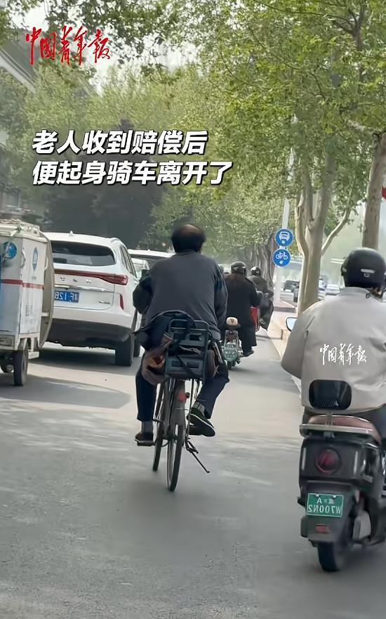钱一到位,交警伸手去拉人,问了一句,这下能起来了吧。大爷说不讹不讹,嘴上说腰闪了,身子却利索地从踏板上挪开,穿衣、扶车、上车,几下动作干净利落,临走还回了句我没事没受伤,脚下发力,骑着自行车拐进了前面的路口。