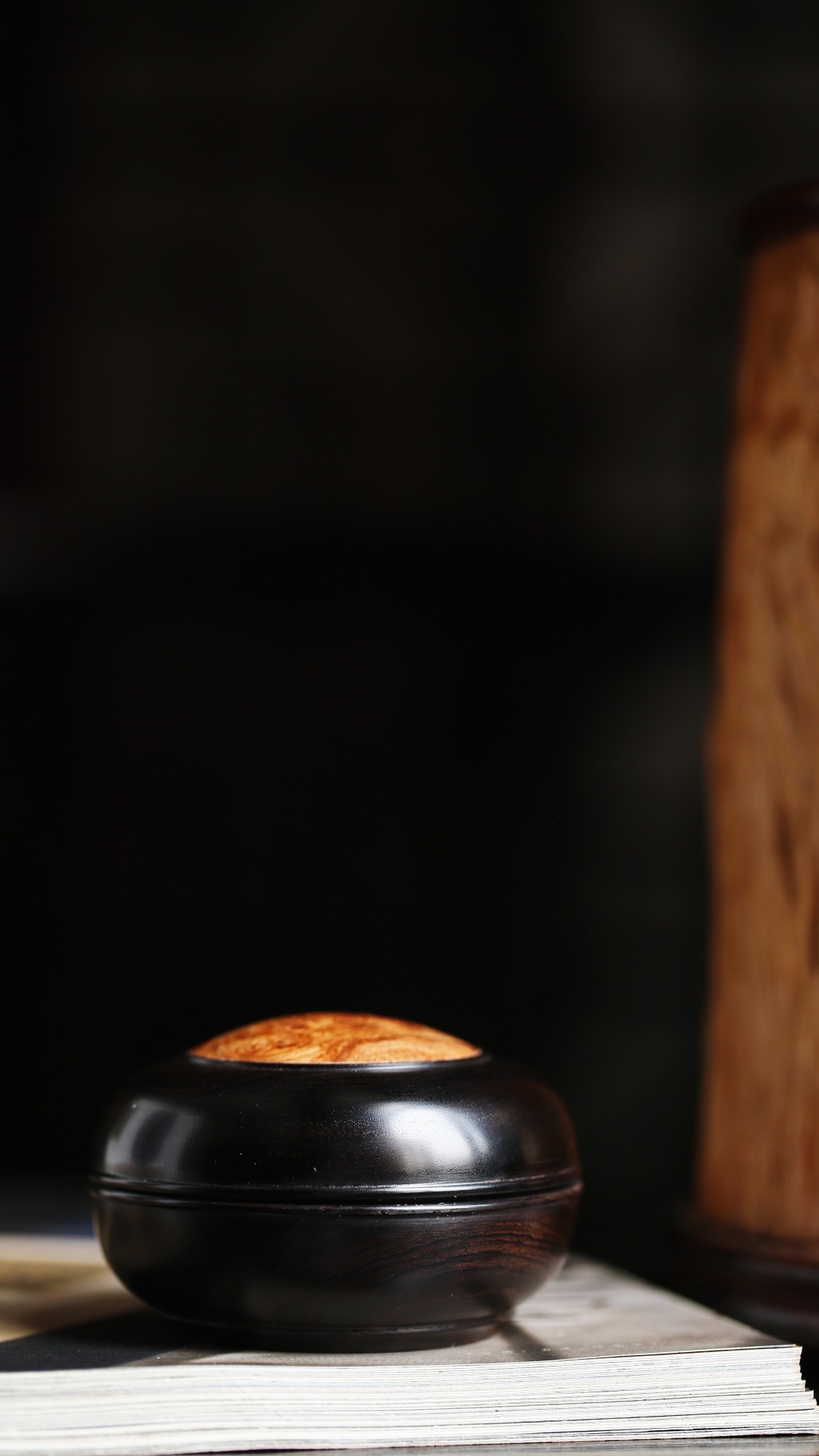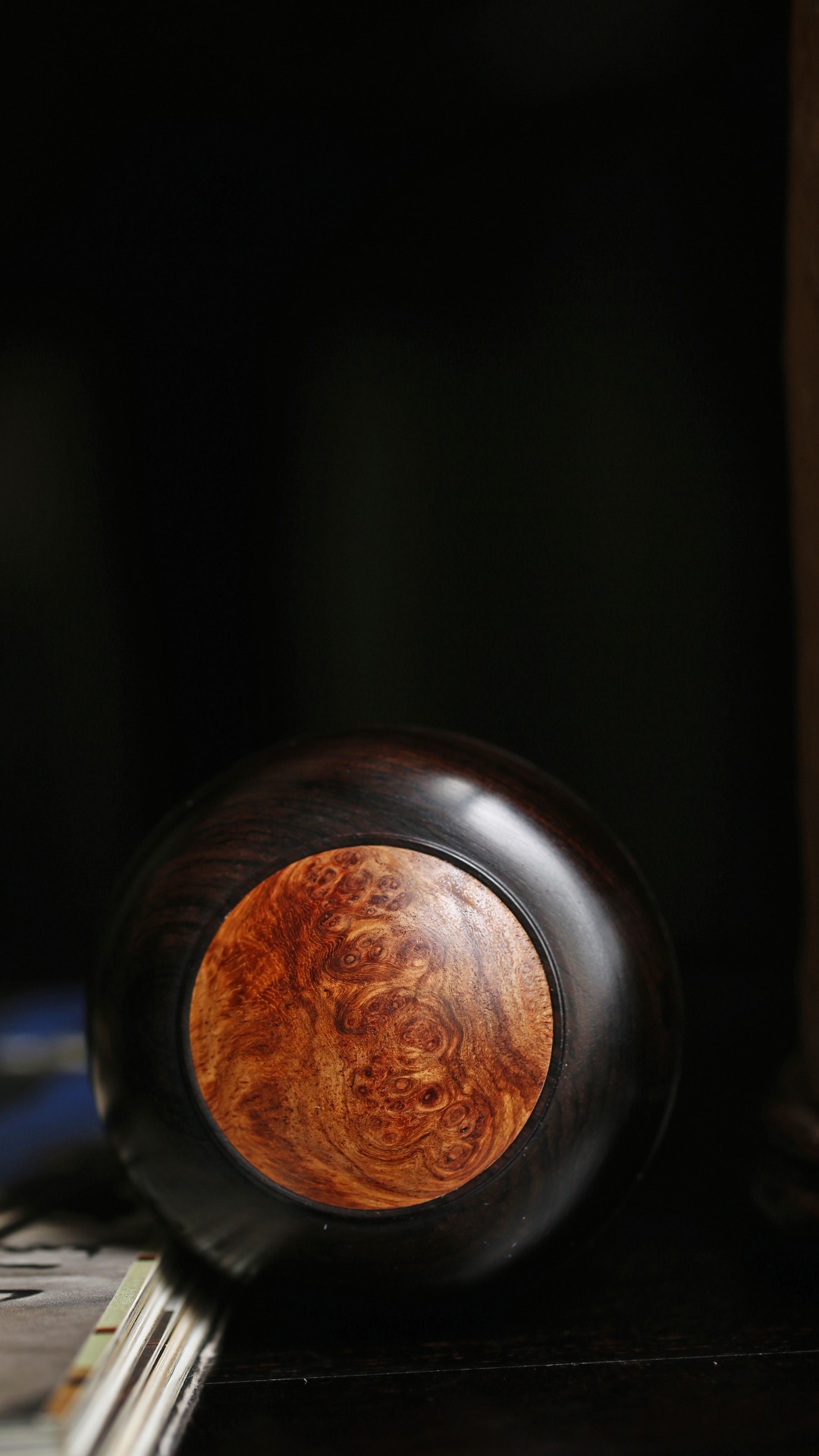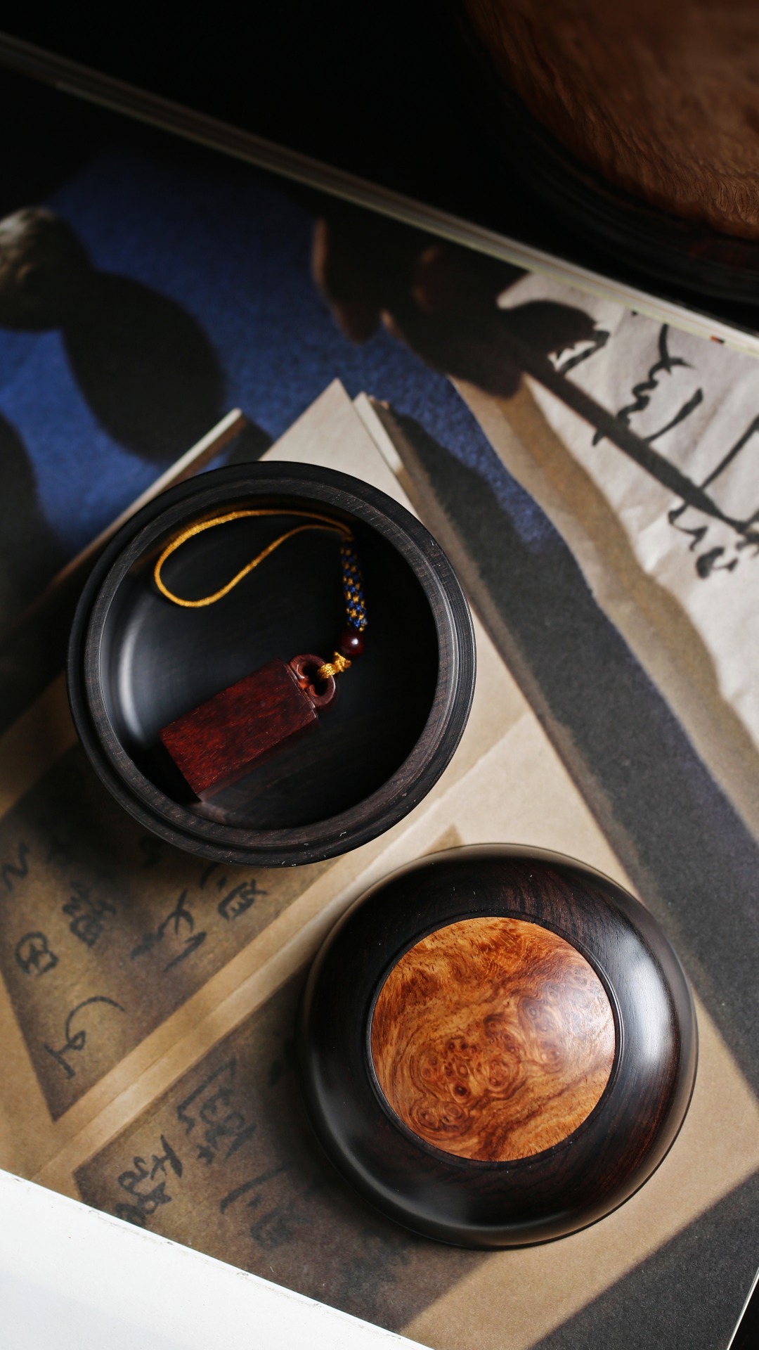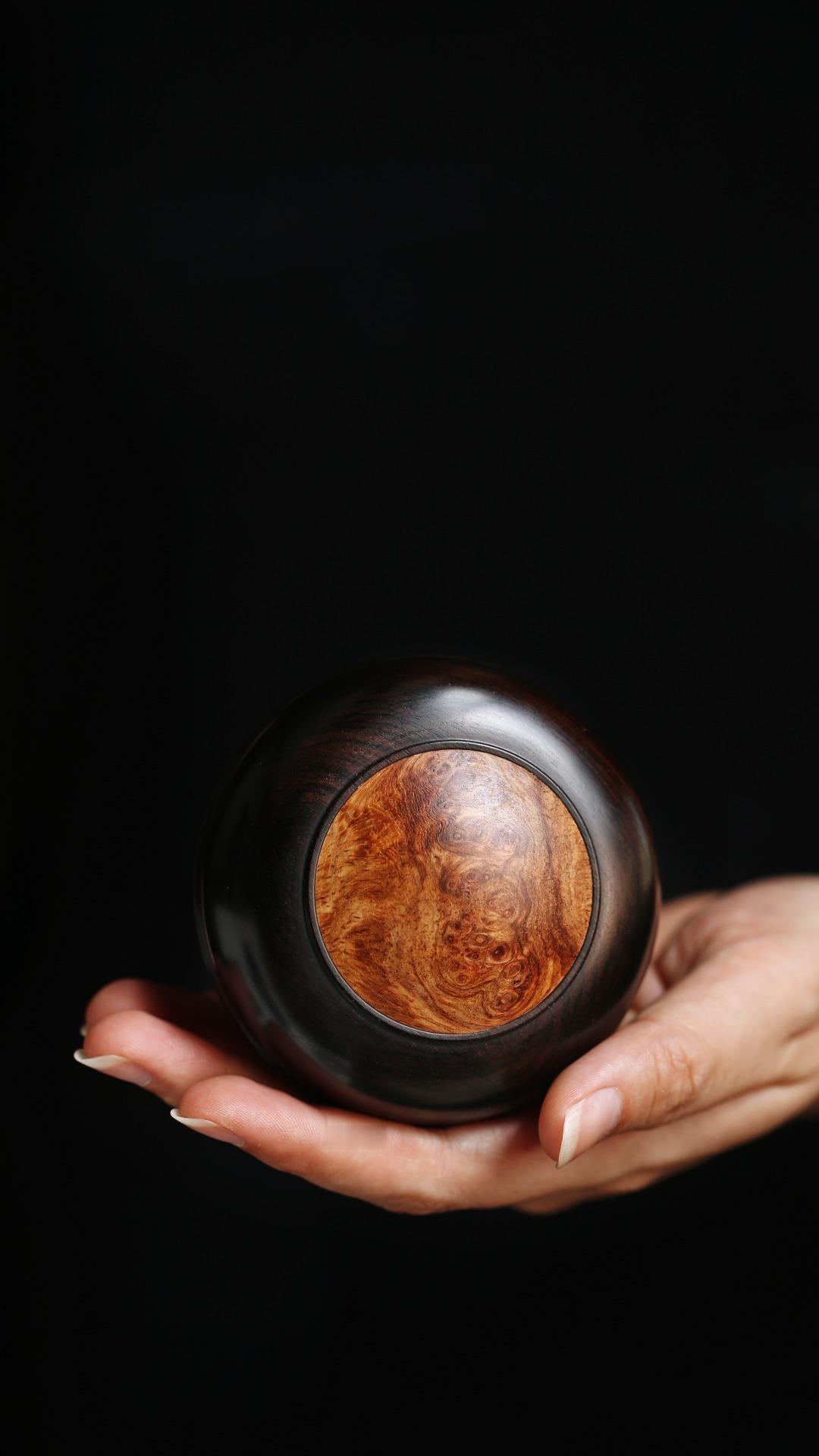紫光檀嵌缅花·印泥盒盖盒嵌榴疤缅花,清雅隽丽,温润如玉,秀美文静,可珍可赏。直径