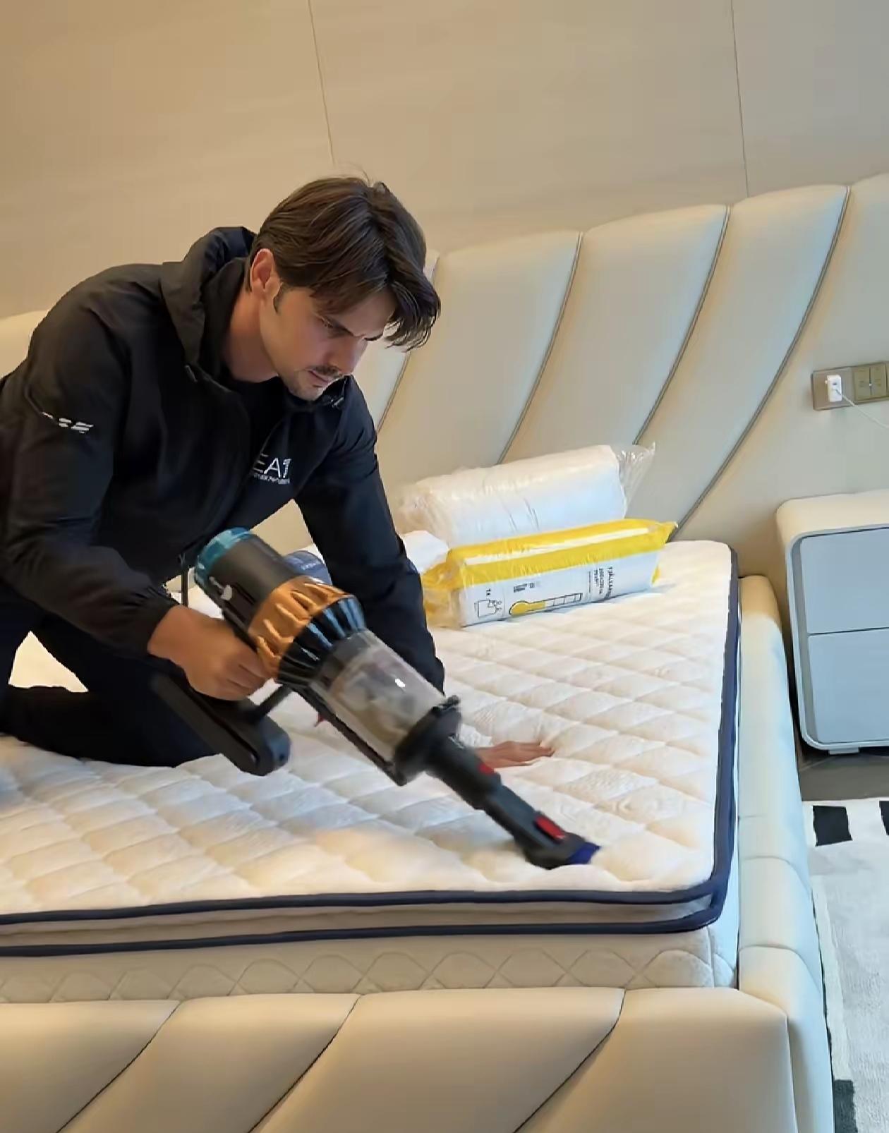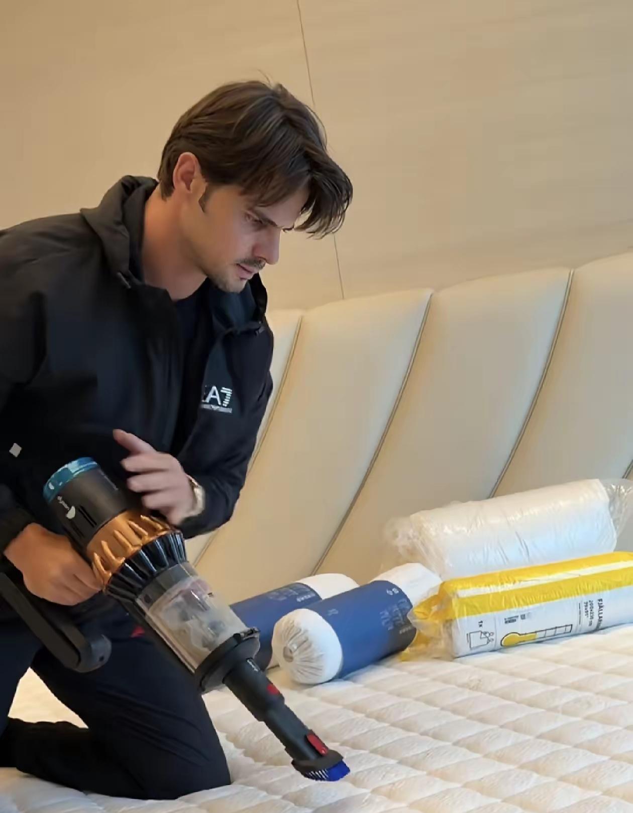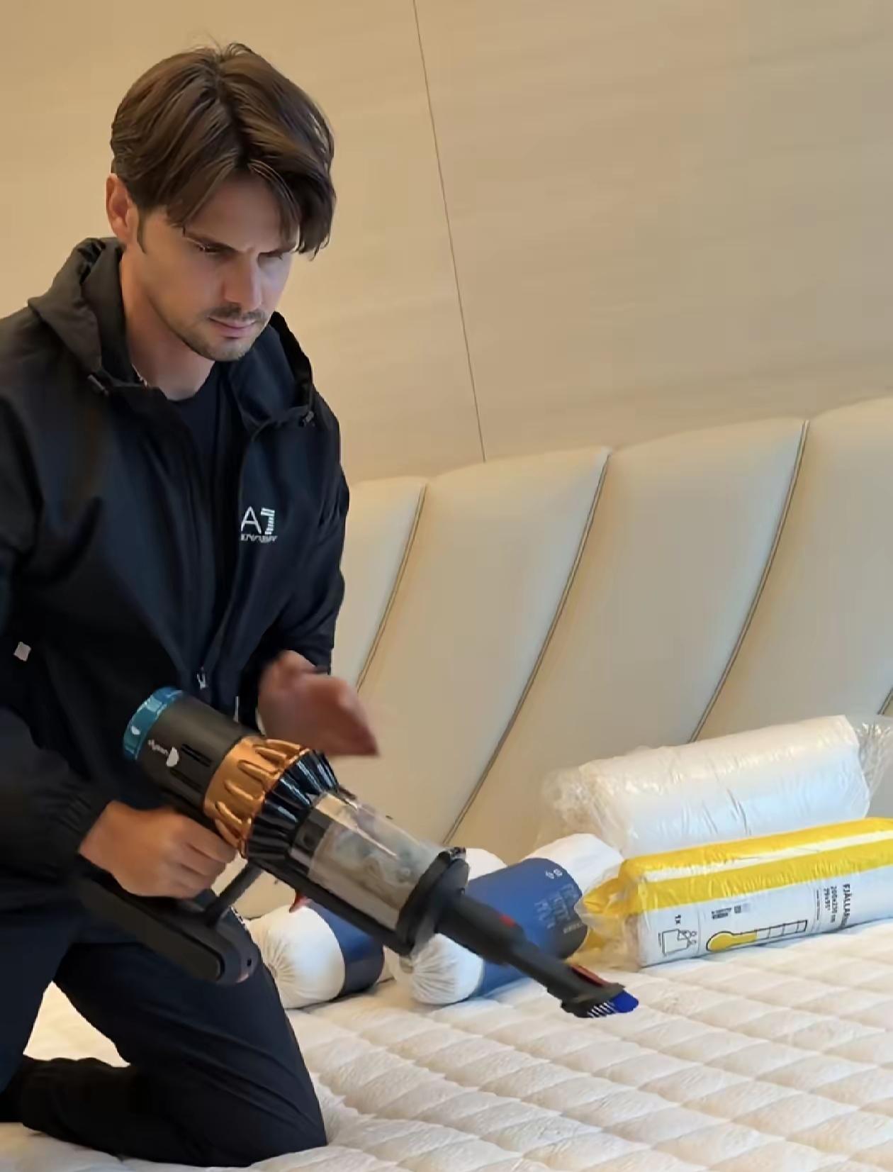 阿迪不仅把每个房间打扫得干干净净,他还买了除螨仪对床铺除螨。