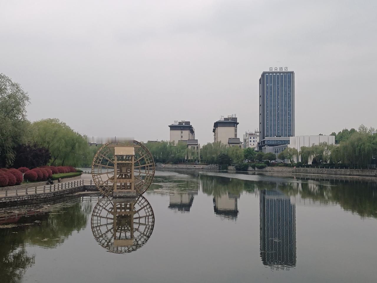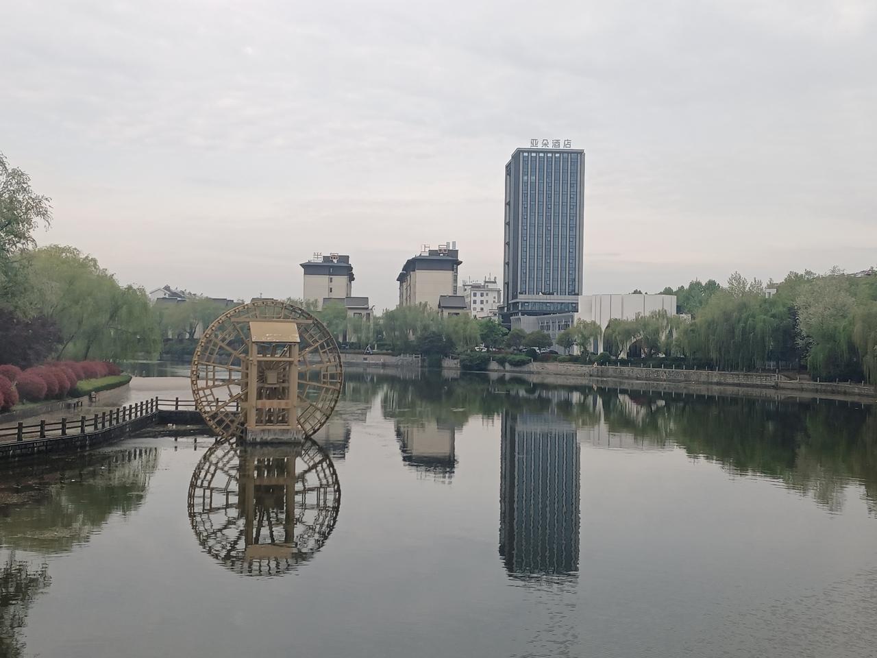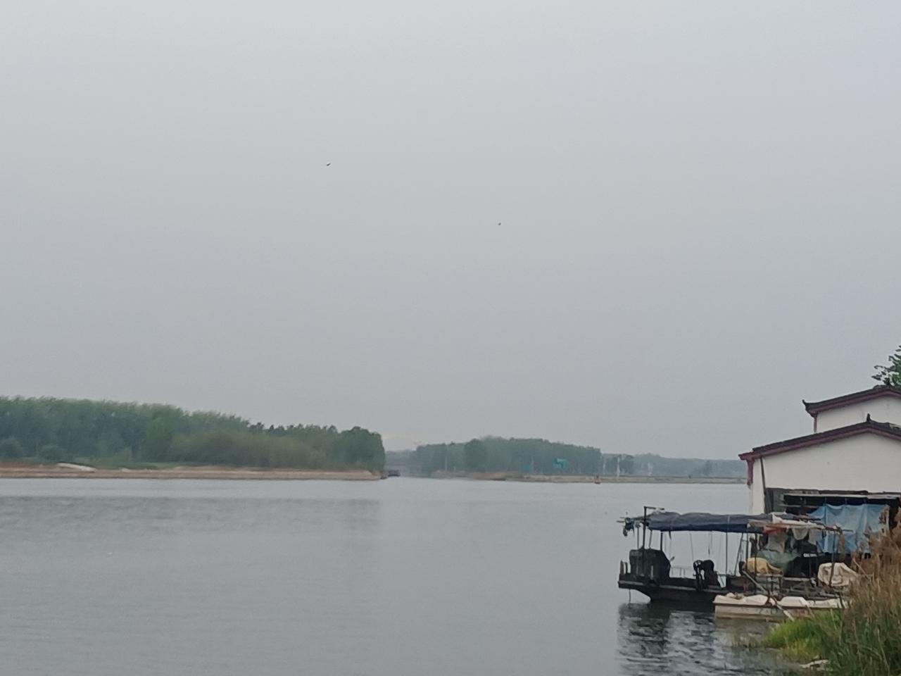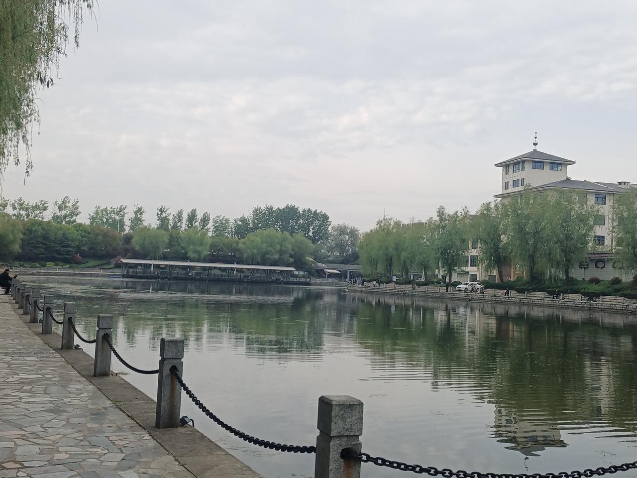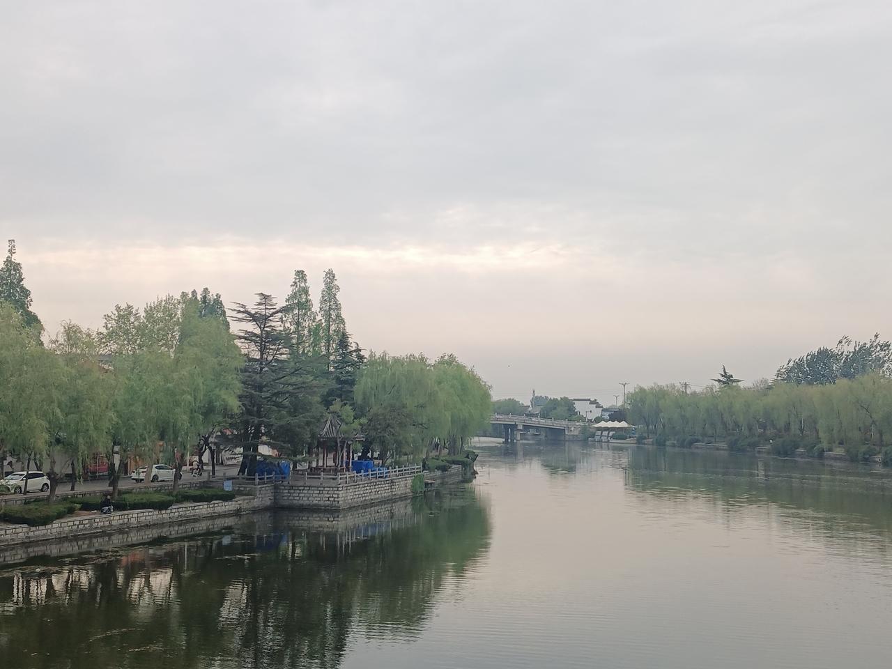 4月16日天气预报“阴、小雨”,气温融合。早晚大运河畔的景色