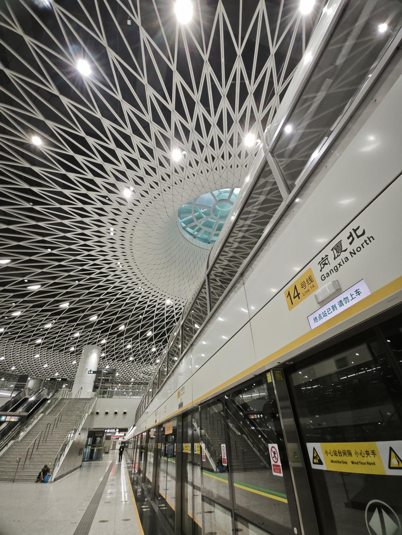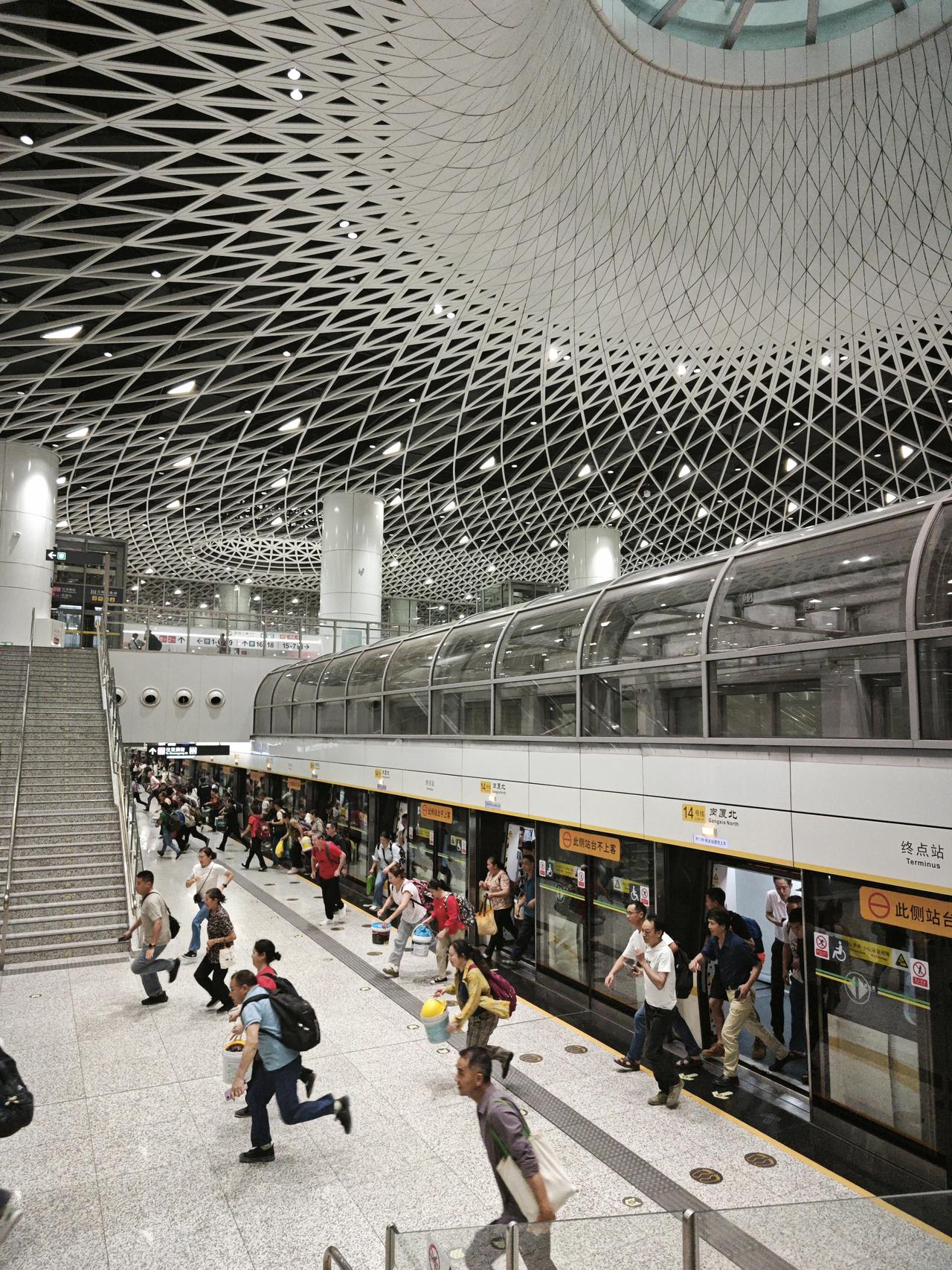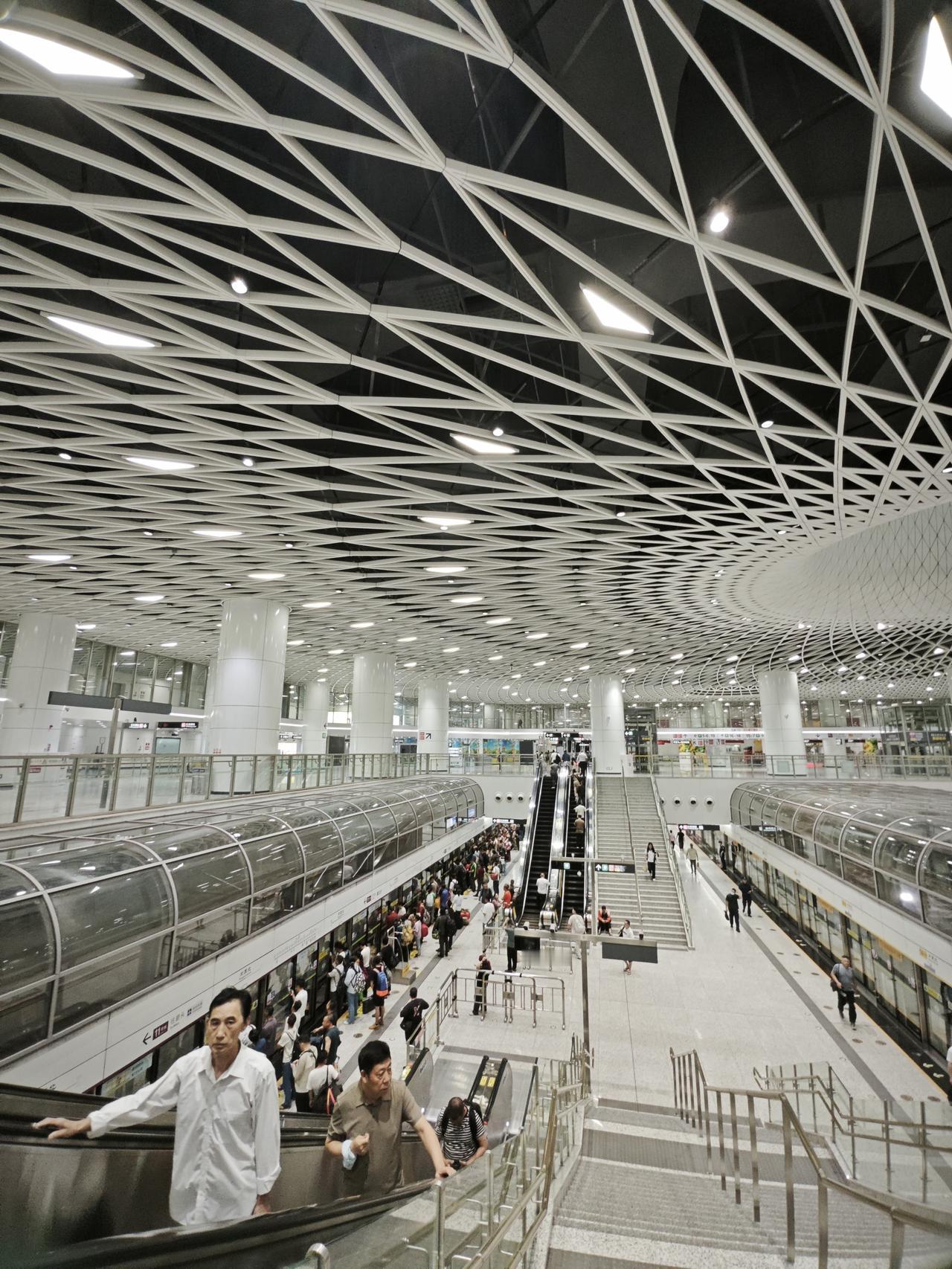 清晨6:25的深圳岗厦北地铁站。论设计感,论建筑的质感,岗厦北地铁站的确是独一无二的。岗厦北地铁站的深圳之眼,现在已经成为深圳的一个网红打卡点。这个地铁站充满了金属元素的质感,四路地铁从时空隧道来回穿梭,给人以科幻的感觉。张艺谋的电影《惊蛰无声》在这里取景,让全国人都认识了这座非凡的地铁站。深圳是一座快节奏的城市,清晨6:25,已经有很多人在奔跑,很多人在排队了。 深圳地铁打卡地