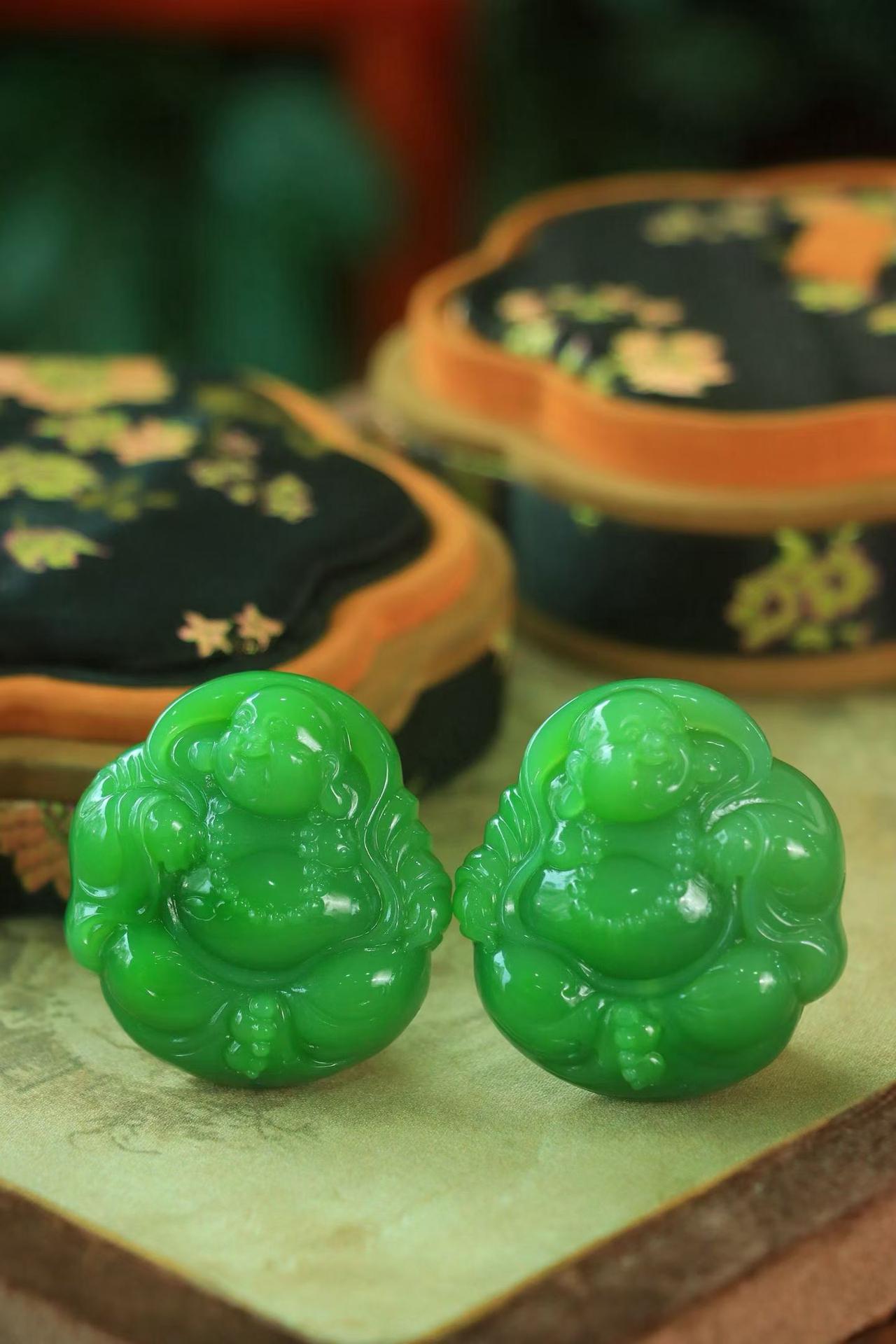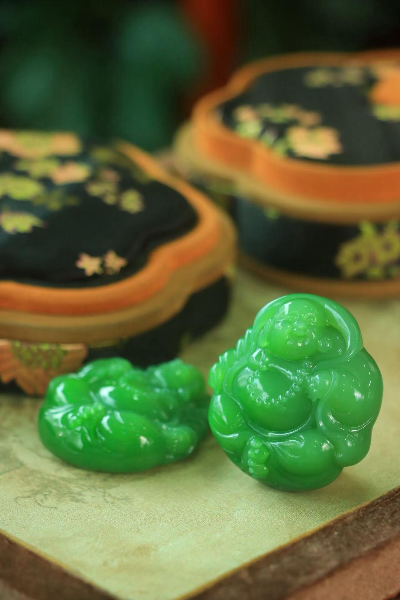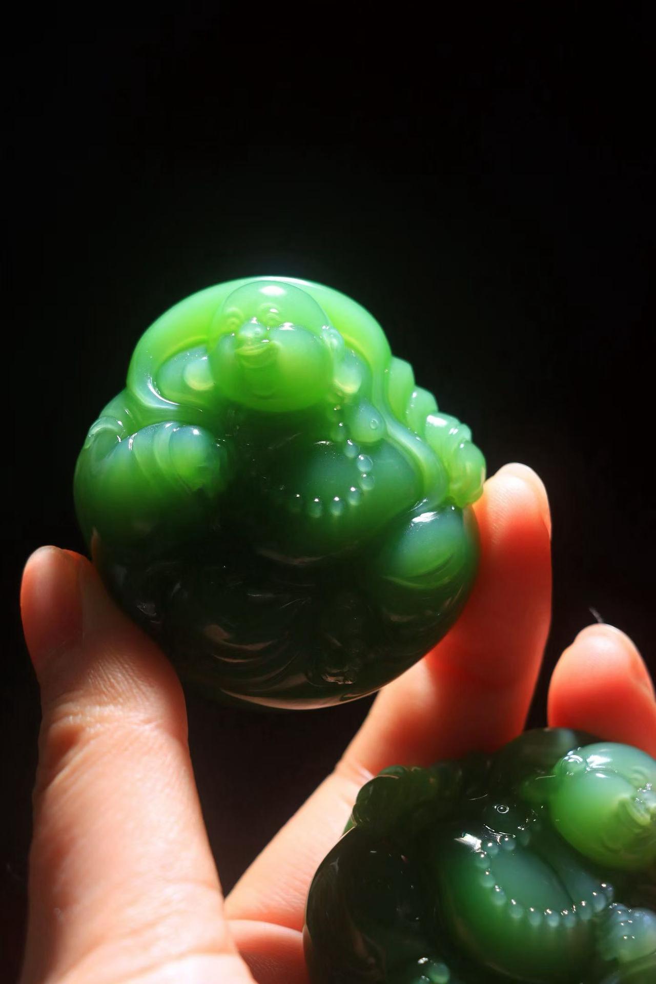 和田玉老坑碧玉,肉质细腻油润~手工精雕弥勒佛,笑古笑今,凡事付之一笑,佛光普照,大肚弥勒佛能容天下之事,弥勒佛开怀大笑,阔袍大肚,福态尽显,饱满圆润,线条柔美,笑对山川,喜解人间烦闹事;欣纳天地,乐装宇内古今愁。