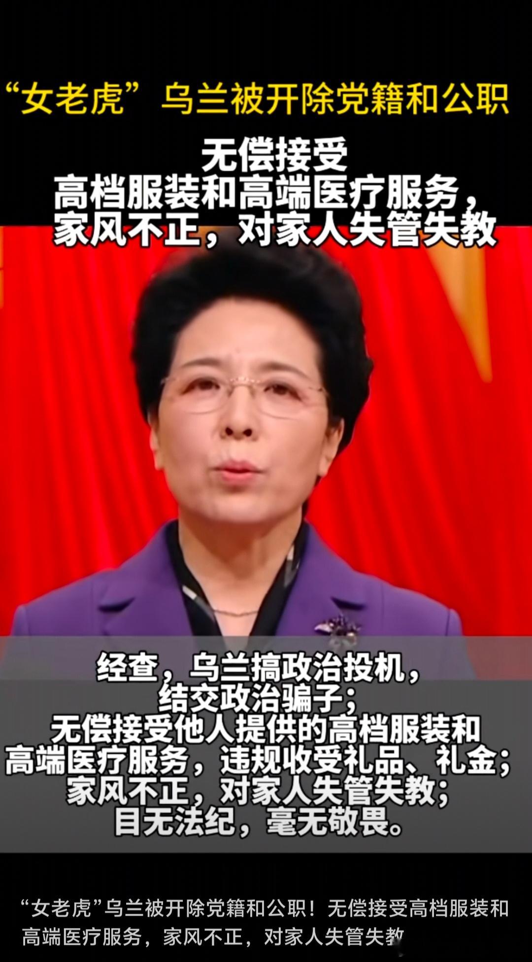 “女老虎”乌兰被开除党籍和公职!