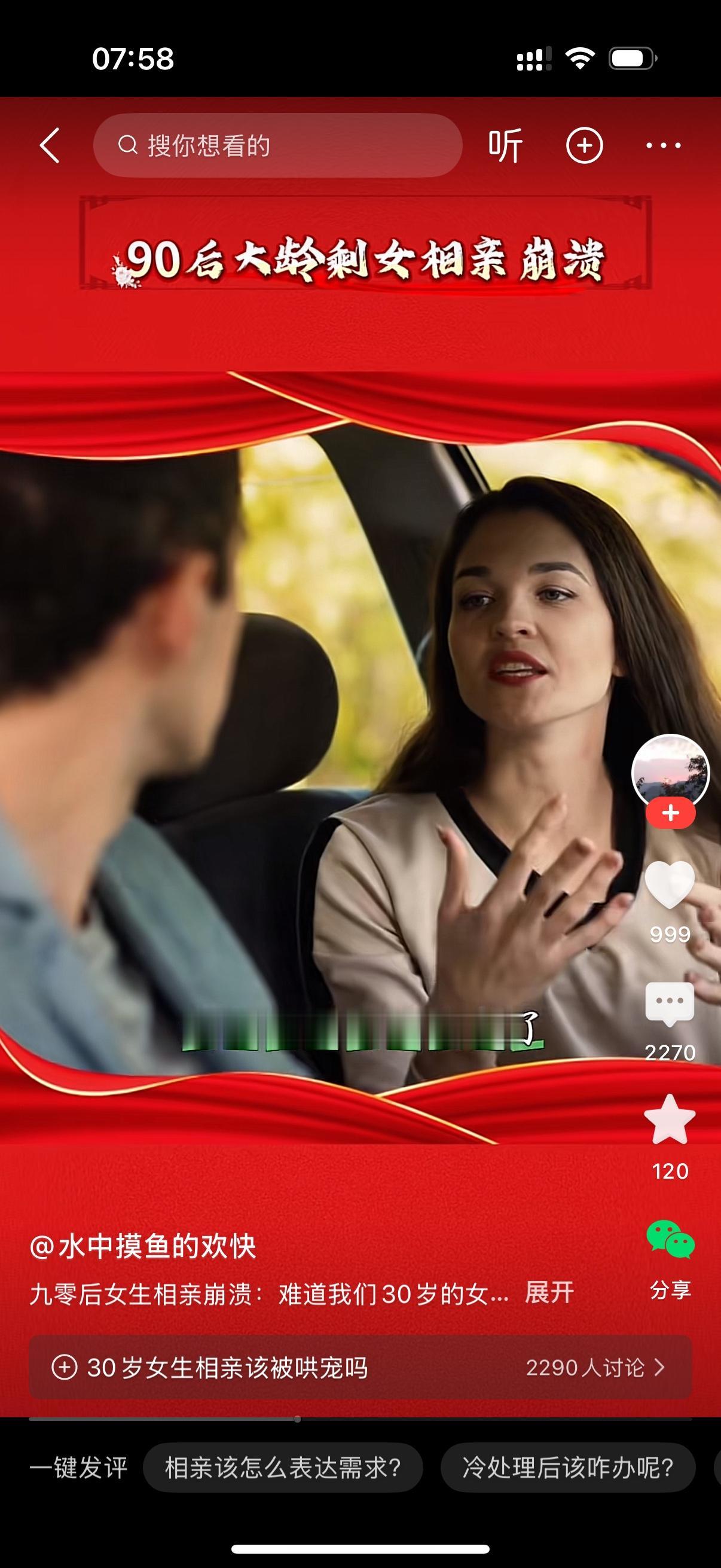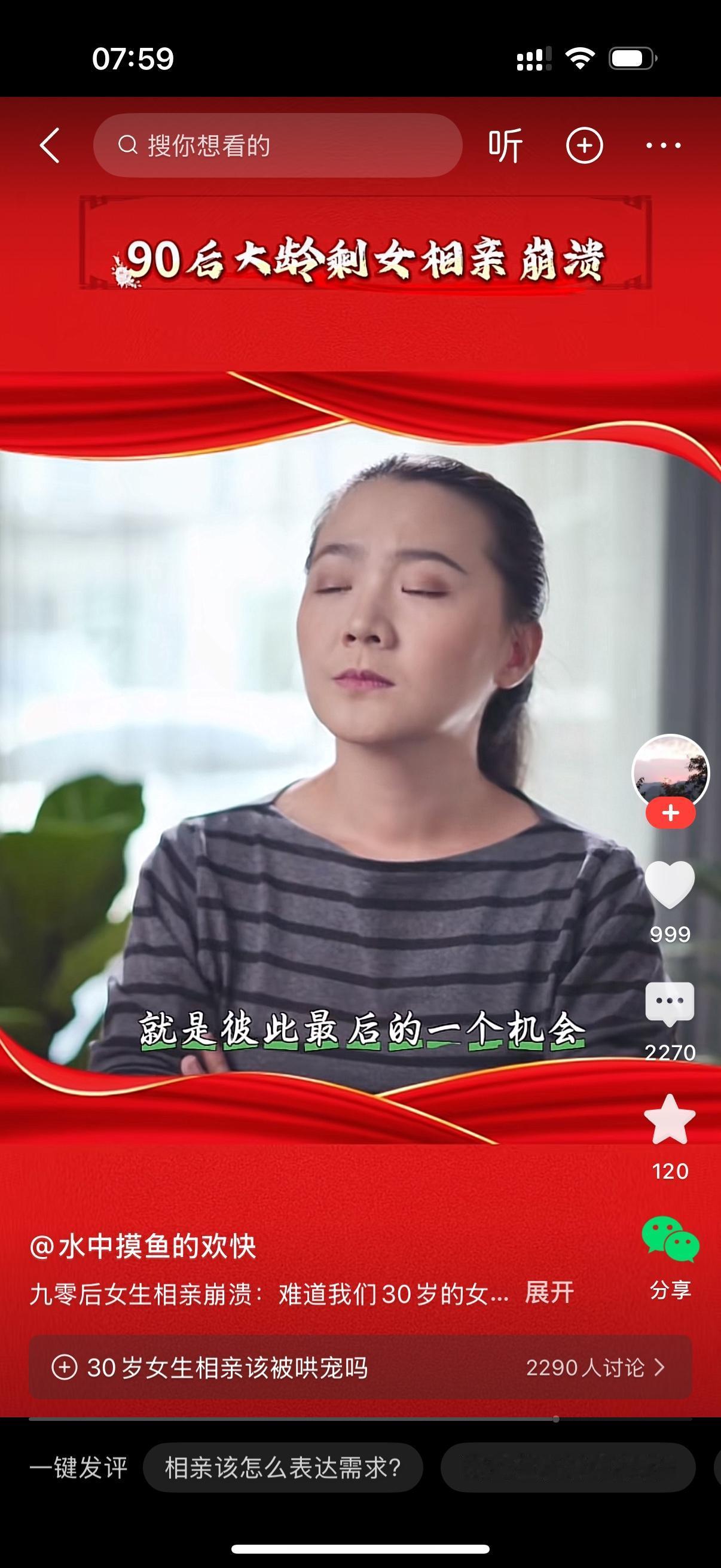 90后大龄剩女相亲崩溃。她发视频哭诉,难道我们30多岁的女生就不配被哄吗?原来女