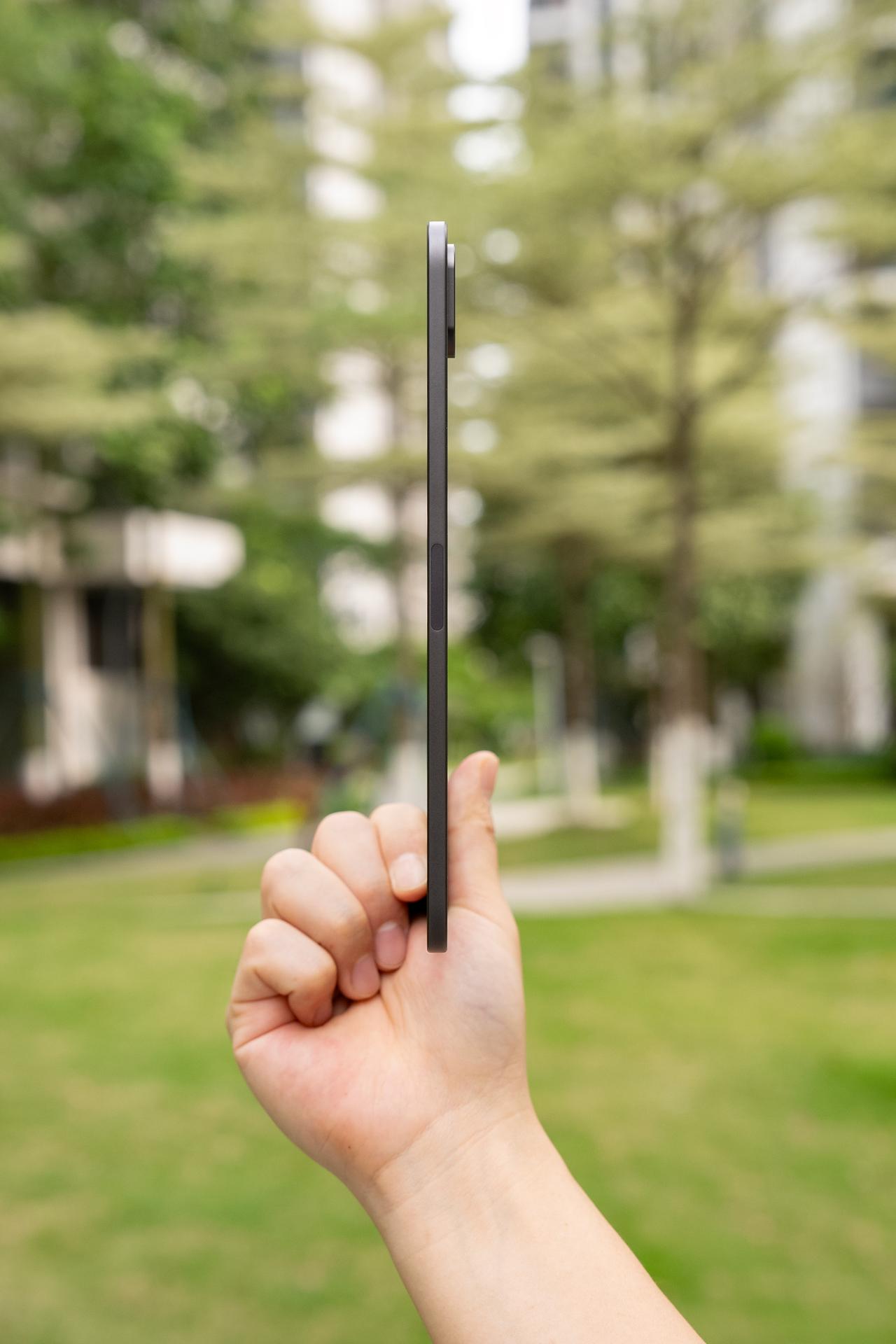 上手直观的感受就是顺手,8.8 英寸的小身板,单手握持刚好贴合掌心,重量279g,厚度只有5.46mm,比一支铅笔还要薄,出门随手放进小挎包、甚至口袋都没问题,通勤、外出旅行,随拿随用,毫无负担。
