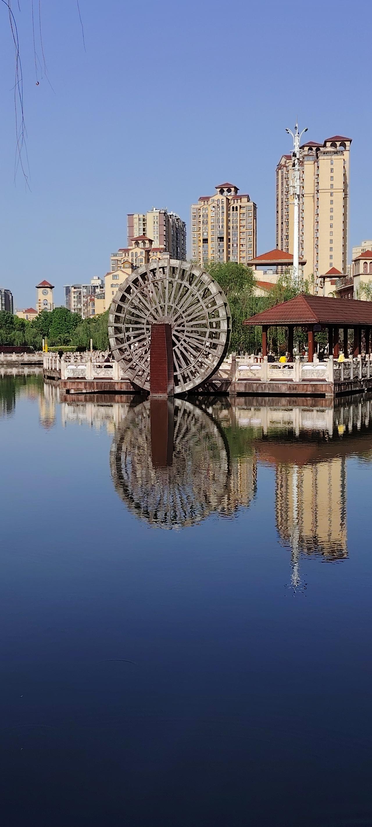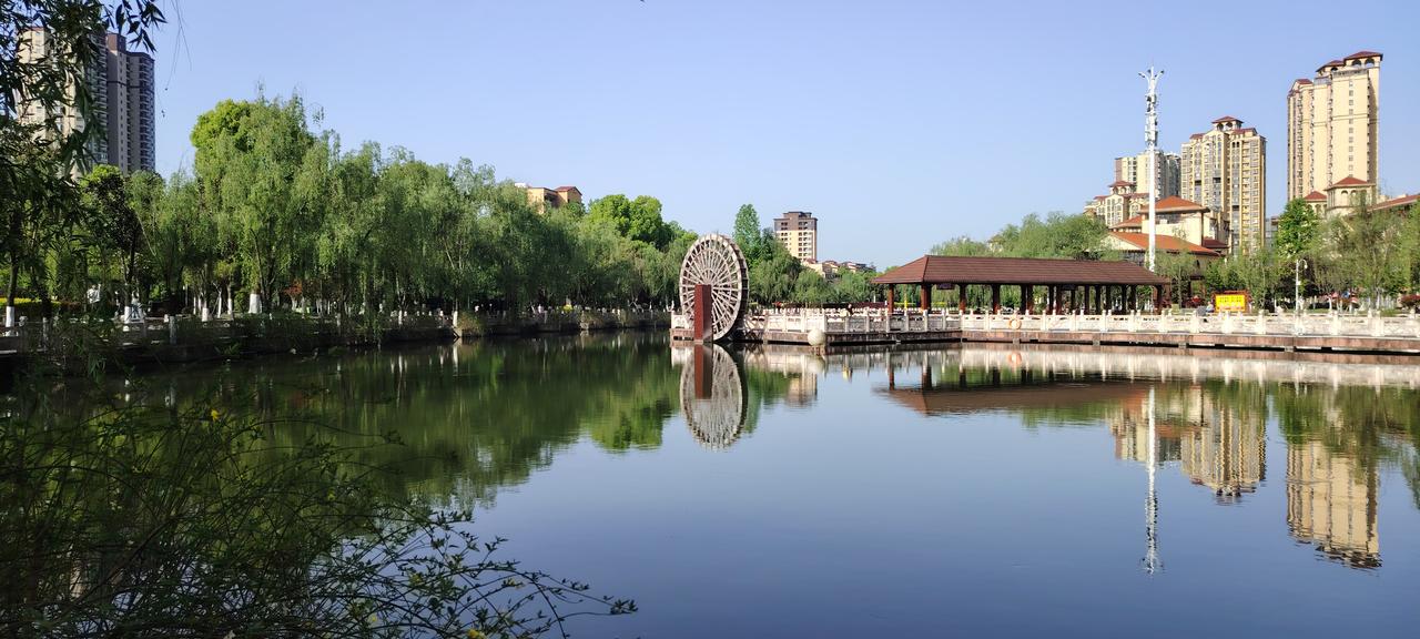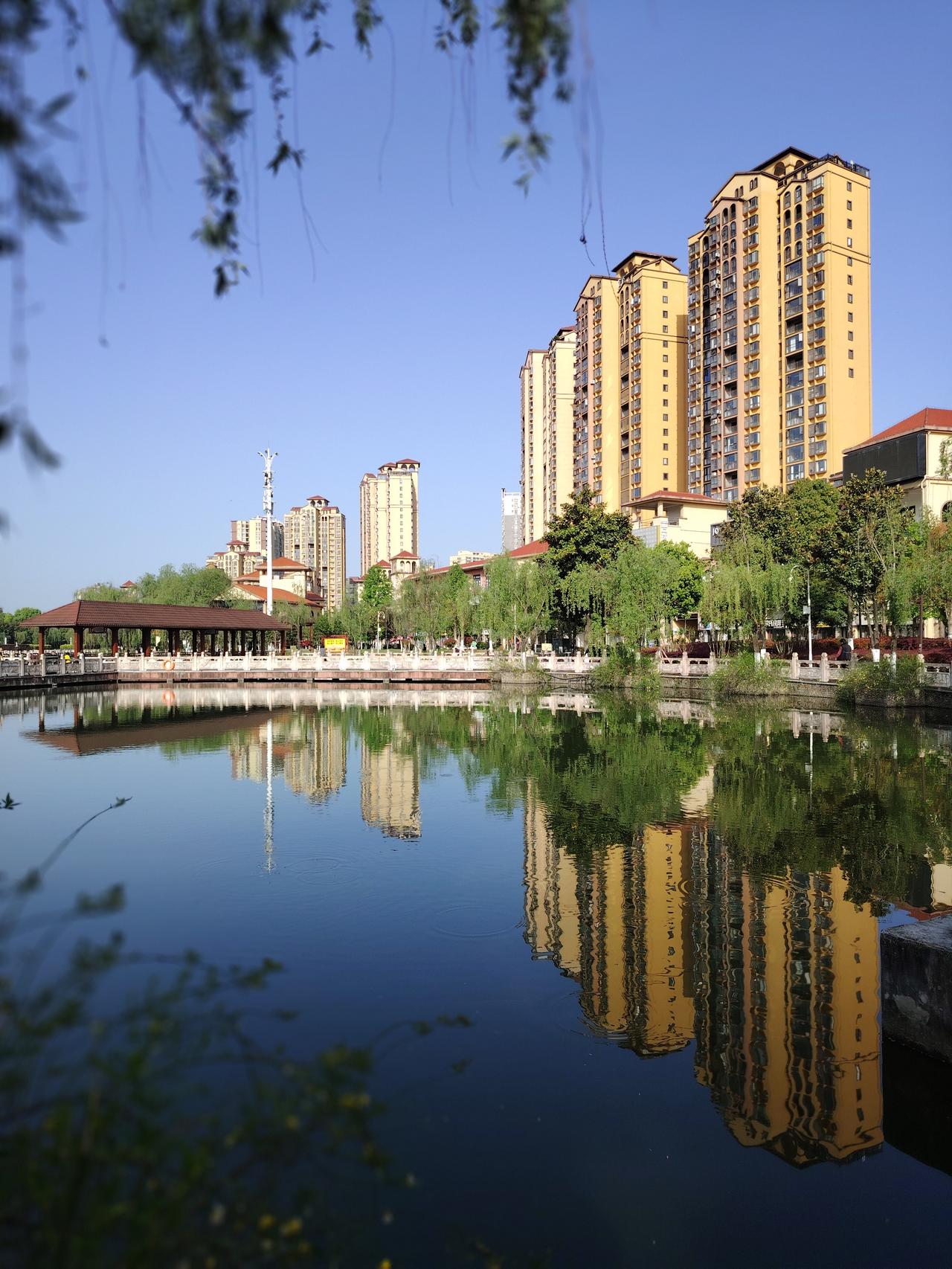 暮春的清晨,小县城公园里的春明景和。