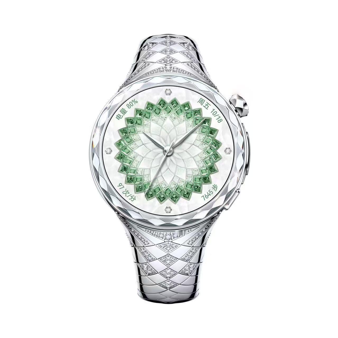 华为手表牵手LV珠宝艺术总监 太闪了!没有女生可以拒绝这样一块亮晶晶的手表!HUAWEI WATCH ULTIMATE DESIGN 非凡大师 星钻绽放款,华为携手曾担任 Tiffany & Co. 首位女性设计总监,也曾出任 路易威登 腕表与珠宝的艺术总监Francesca Amfitheatrof联合设计~以充满活力的女性内在韵律为设计灵感,用整块蓝宝石玻璃雕琢出了3层结构,60个钻石切面,99颗天然钻石,为常规的高奢腕表带来了更智能、更科技的佩戴体验~可以说是独一份了!