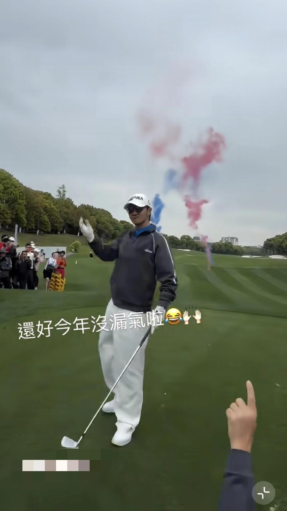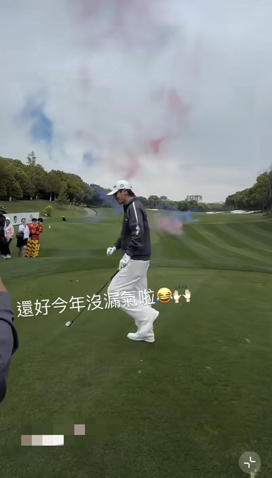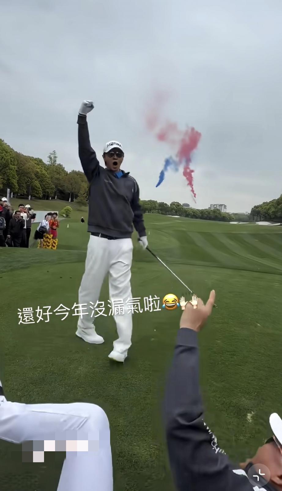 而罗志祥确实现身苏州太湖参加高尔夫了,他开球就特别兴奋,一杆打得老远,接着他在原地手舞足蹈,就像是在舞台上表演一样。
