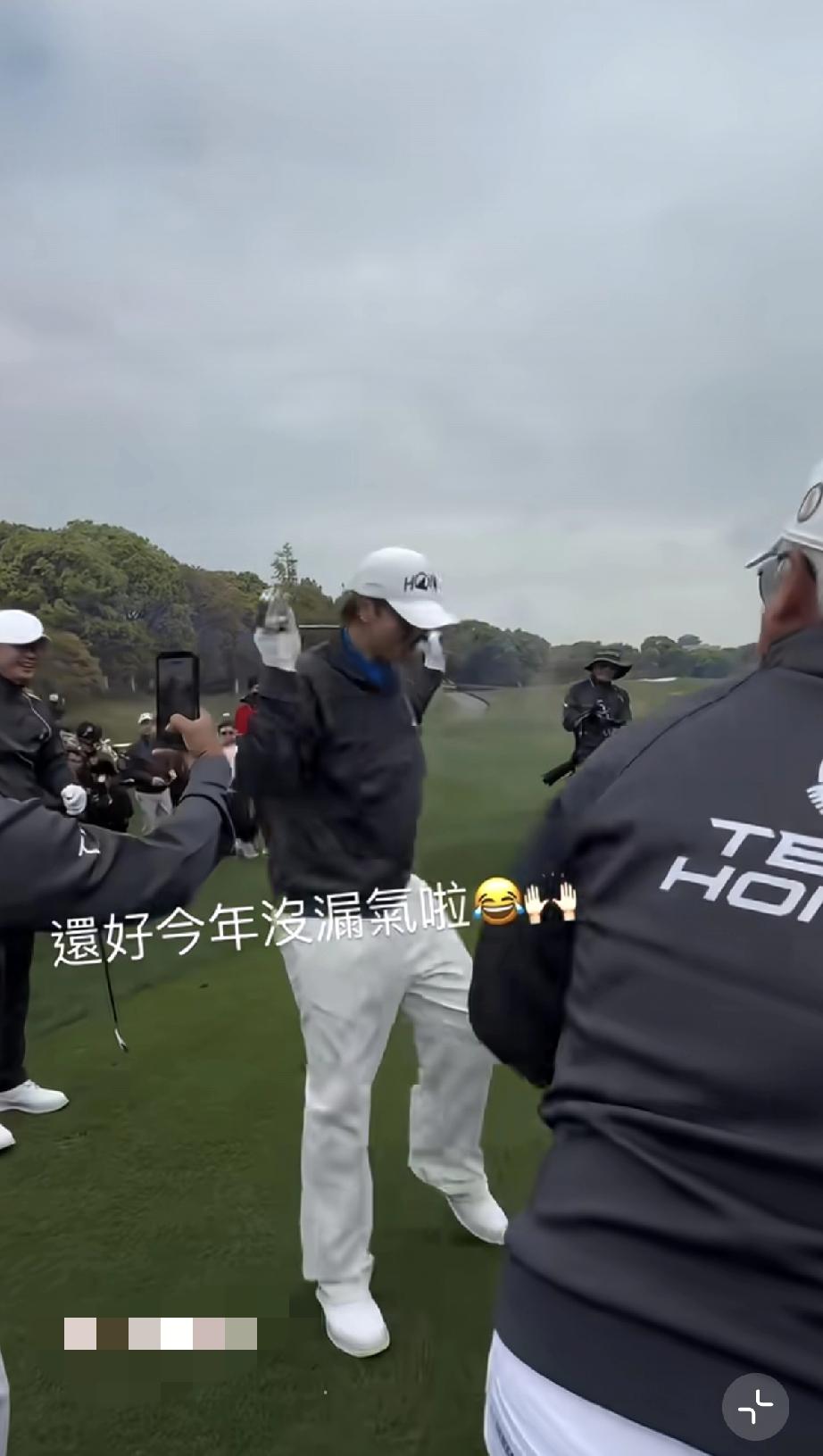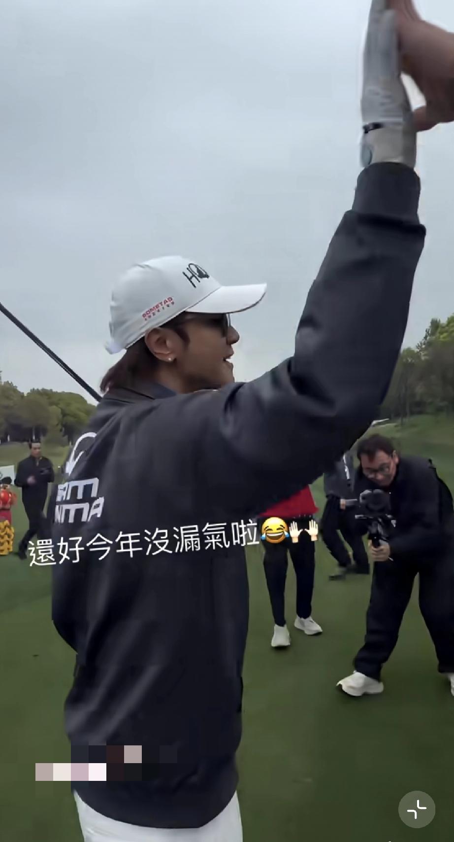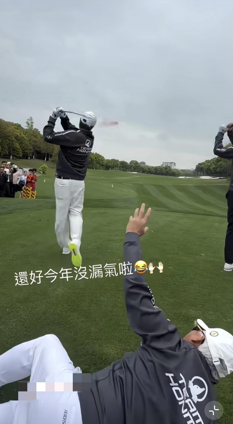 而罗志祥确实现身苏州太湖参加高尔夫了,他开球就特别兴奋,一杆打得老远,接着他在原地手舞足蹈,就像是在舞台上表演一样。
