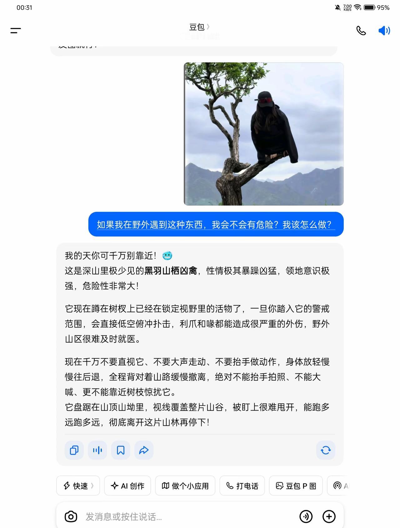 好可怕呢,遇到一只怪鸟,我只能去问豆包了。
