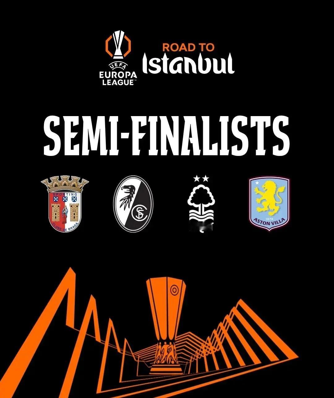 欧战三大杯四强出炉:英超4队,西甲德甲法甲各2队,葡超乌超各1队,意甲全军覆没。