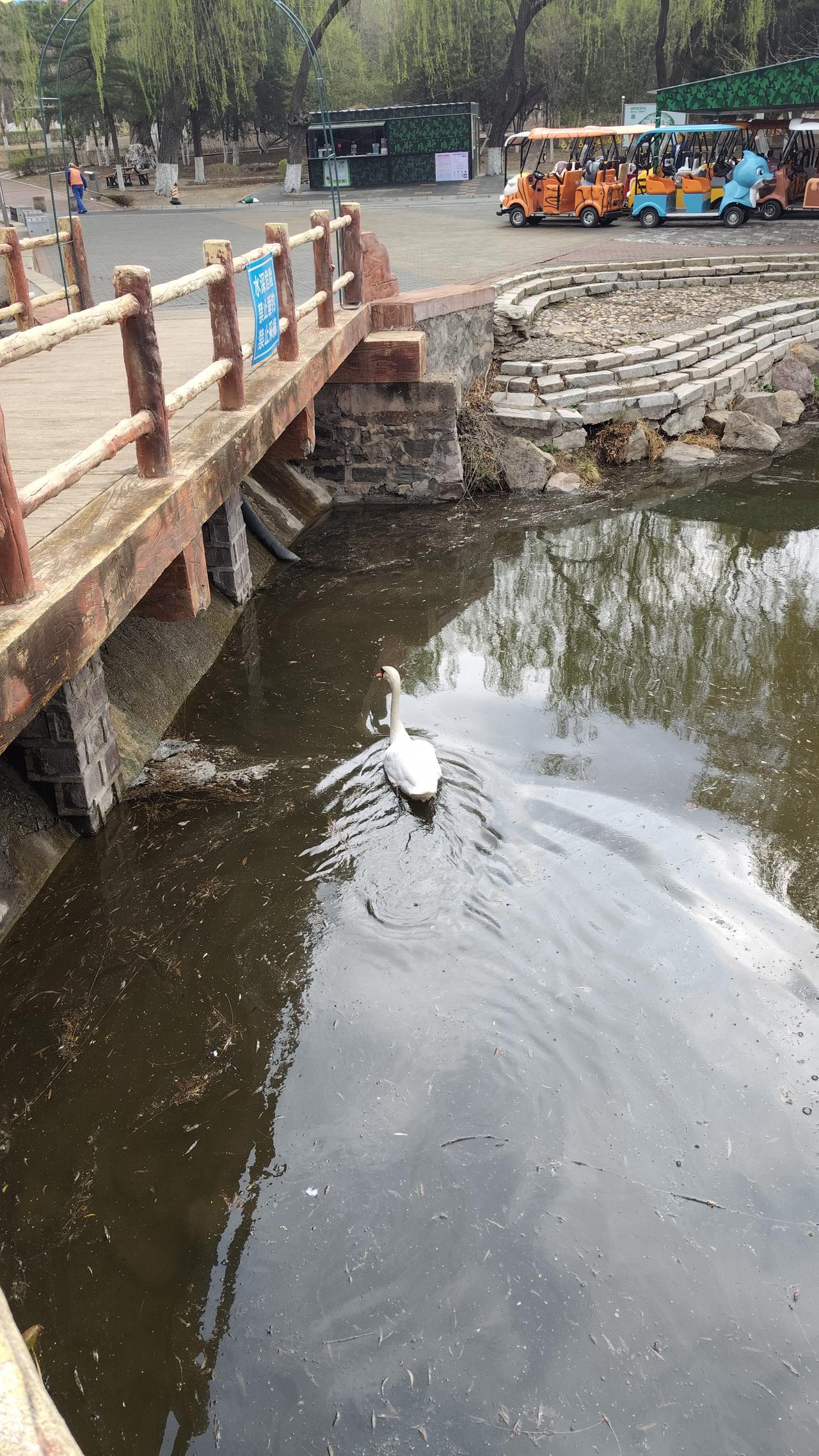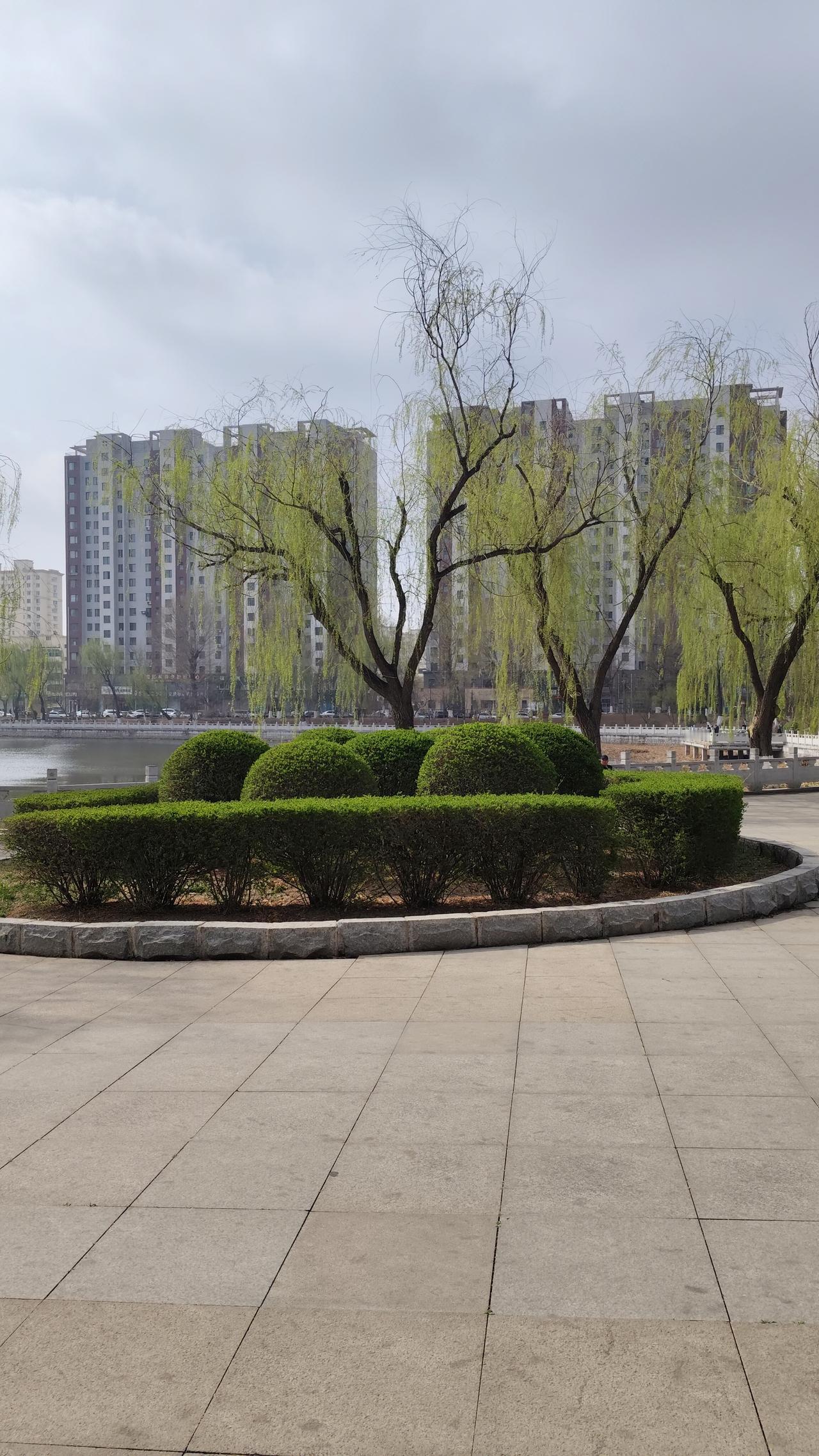 发一张你相册最近拍的花最美四月天,锦州北湖公园柳绿花开,湖面几只天鹅在嬉水玩耍,