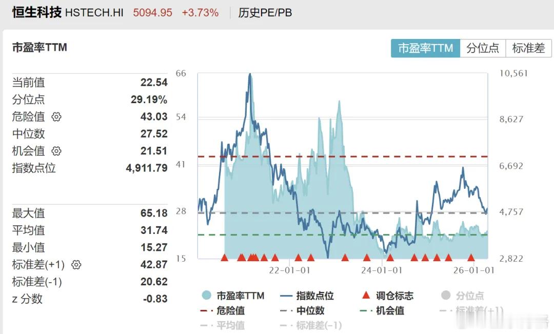 (1)估值现状:现在确实算低估给大家上组实锤数据,来自Wind(2026/04/16):恒生科技最新市盈率是22.54倍,处于它上市以来29.19%的分位(下文图表能看到)。