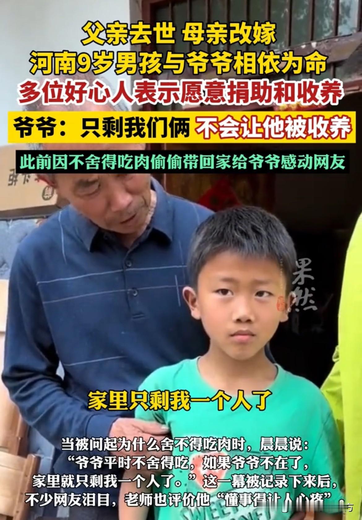泪目了!9岁本该在父母怀里撒娇、无忧无虑上学的年纪,然而河南一名9岁小男孩,却早早尝遍了人间的心酸,父亲因病离世,母亲不堪生活重负改嫁他乡,从此年幼的他只能和年迈体弱的爷爷相依为命,小小年纪就扛起生活的重担,靠着捡废品干农活勉强糊口。