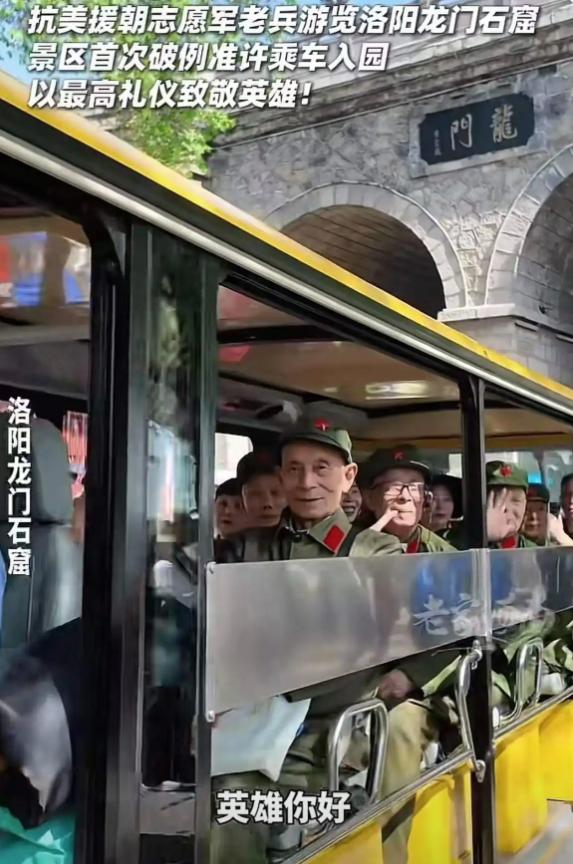 这次要给龙门石窟景区点赞!河南洛阳,一群特殊的游客来到景区,他们是28位志愿军老战士,但由于年纪太大,只能坐在车里,于是景区临时做了个决定,就是让几辆车破例开进去,看似违背了景区的规矩,却收获了全网点赞