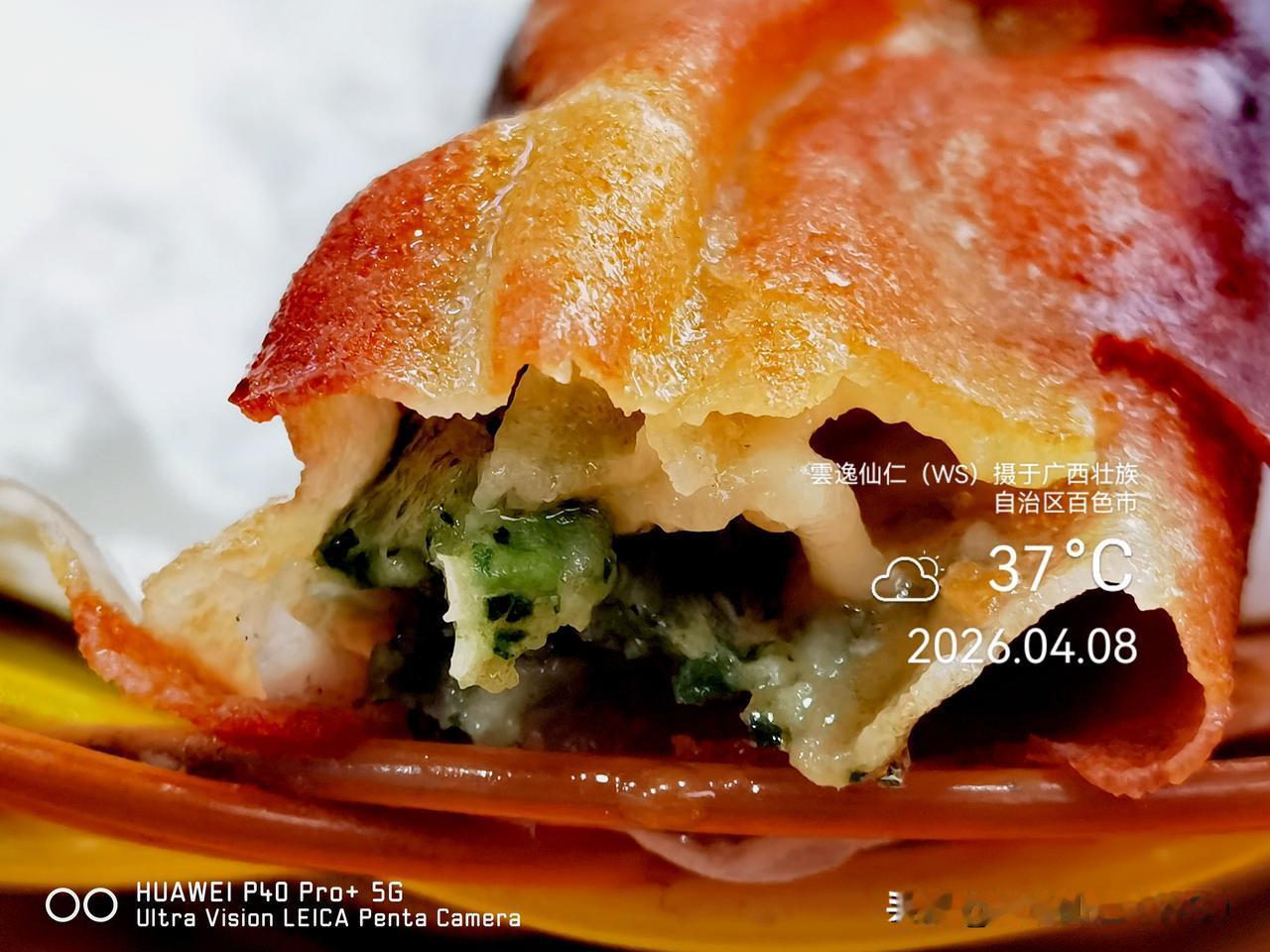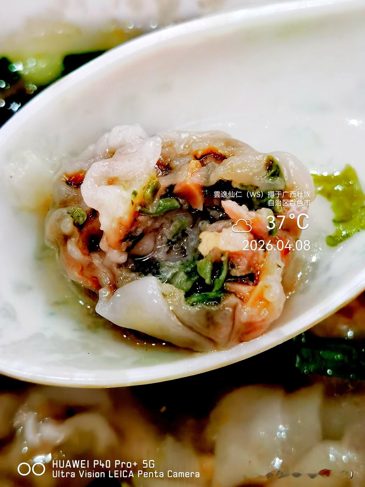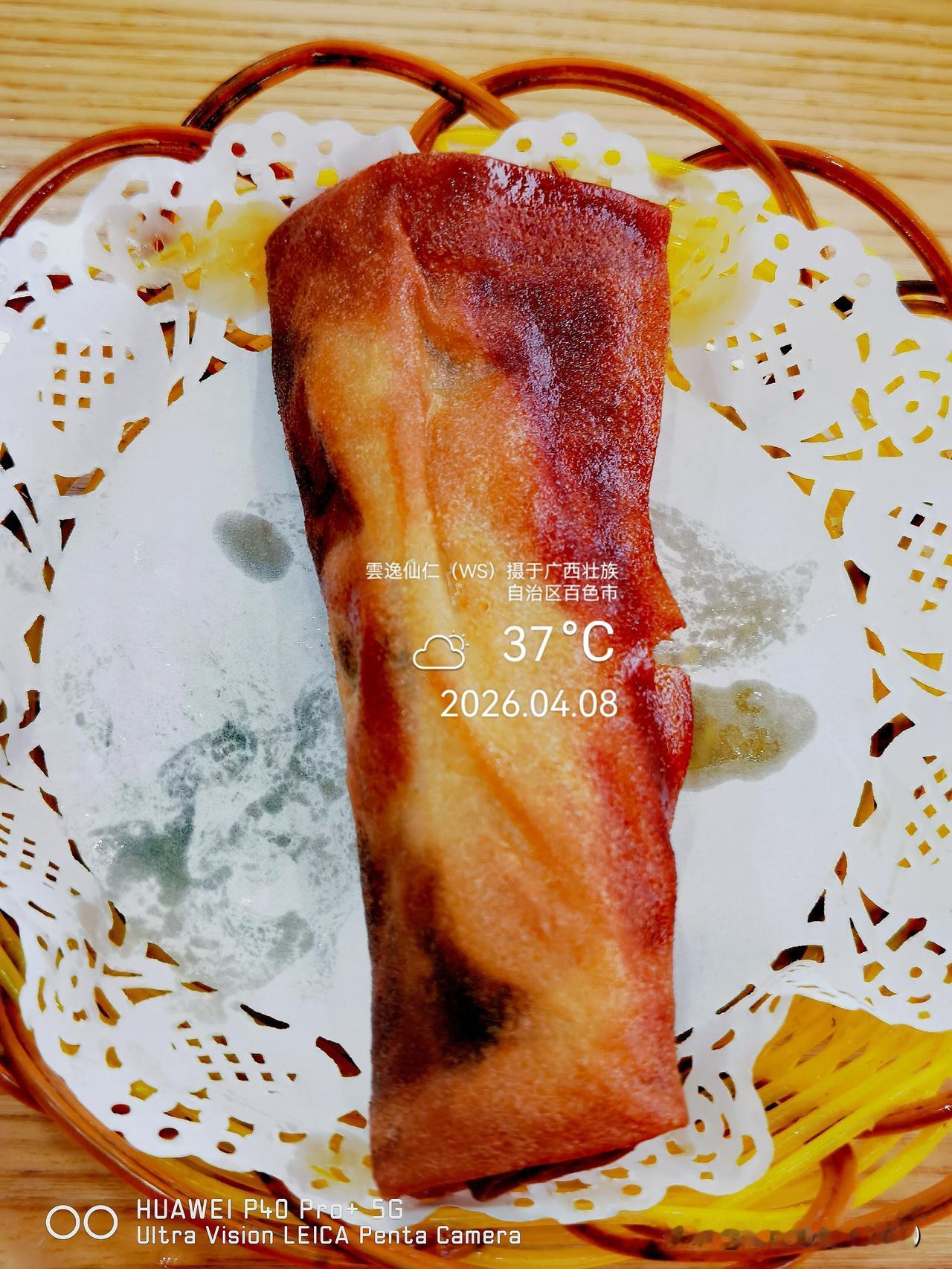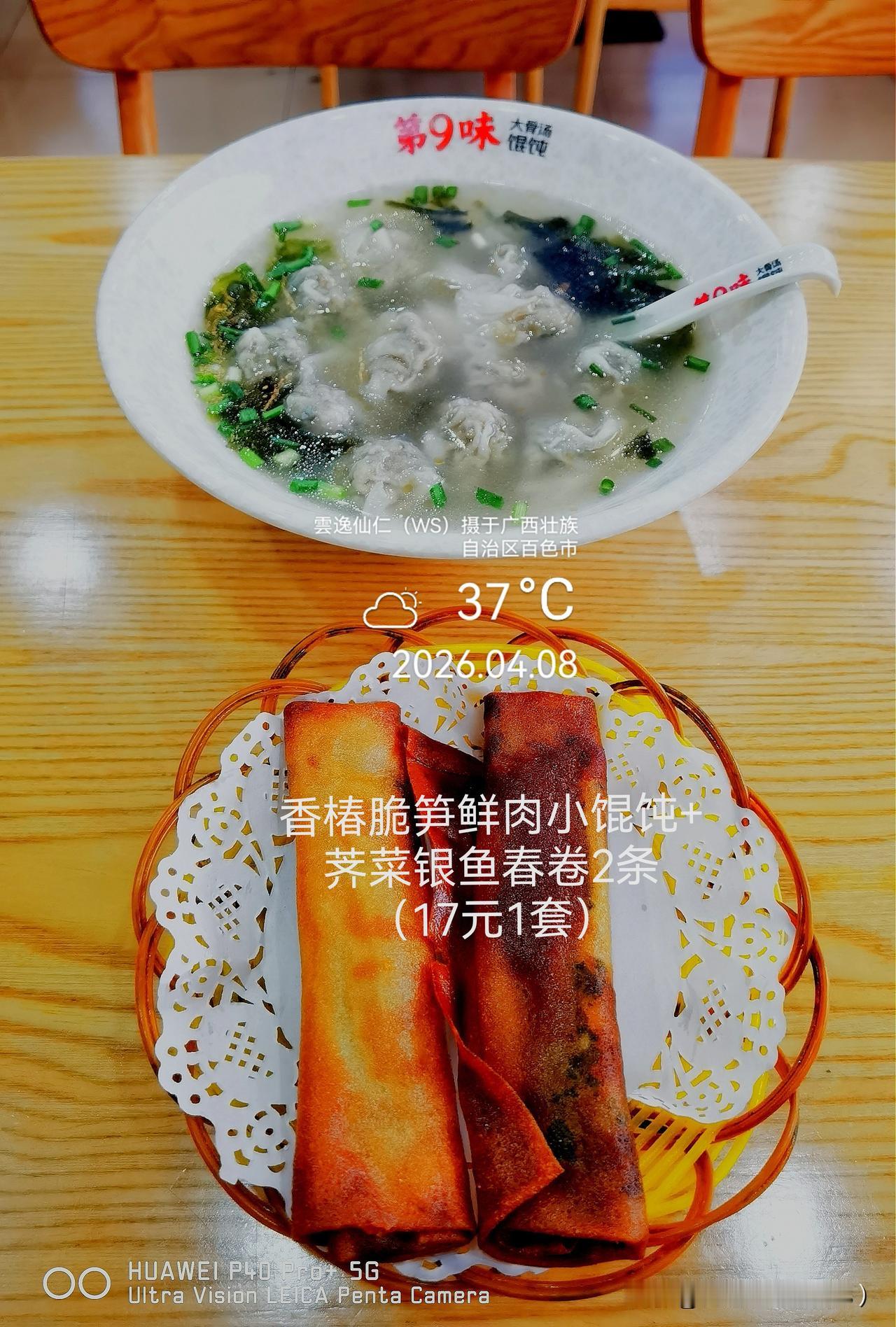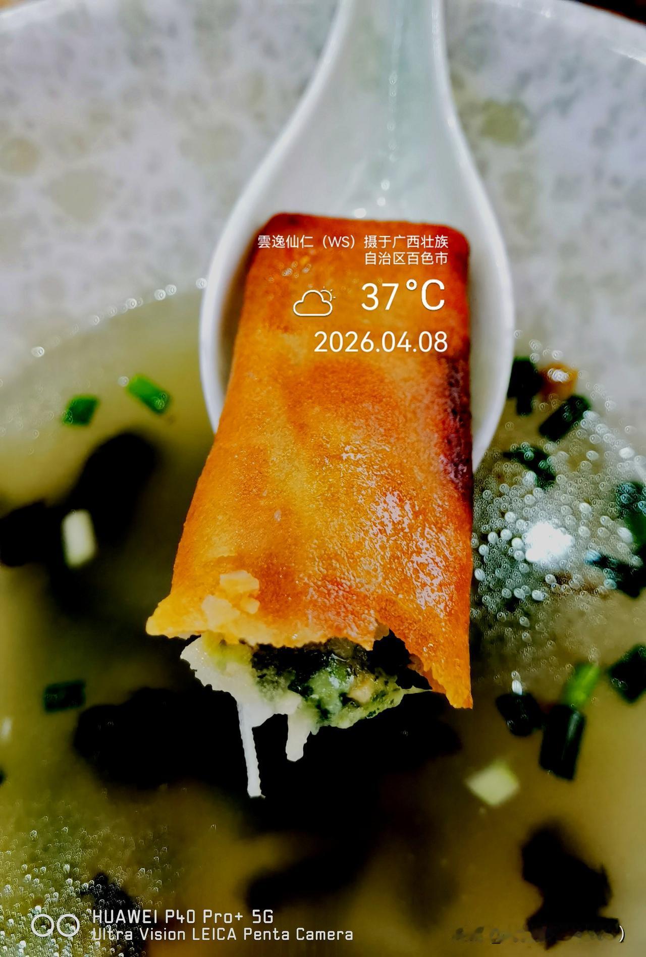 旅居生活记录(9444)广西壮族自治区百色市(129)品尝小吃38:香椿脆笋鲜肉小馄饨+荠菜银鱼春卷2条(17元1套)、七彩燕麦包(2.5元1个)、沃柑丑果5元(1元1斤)。