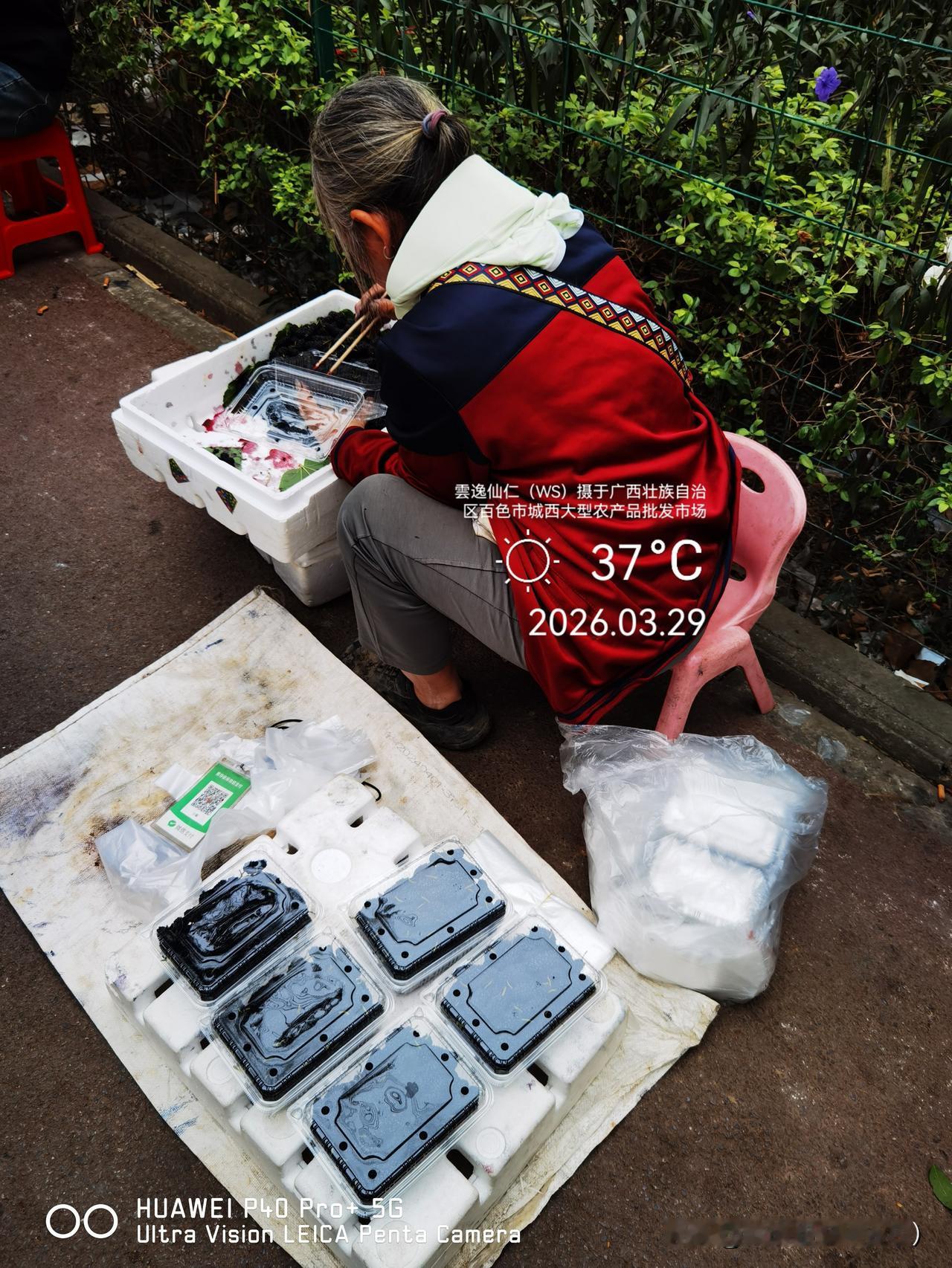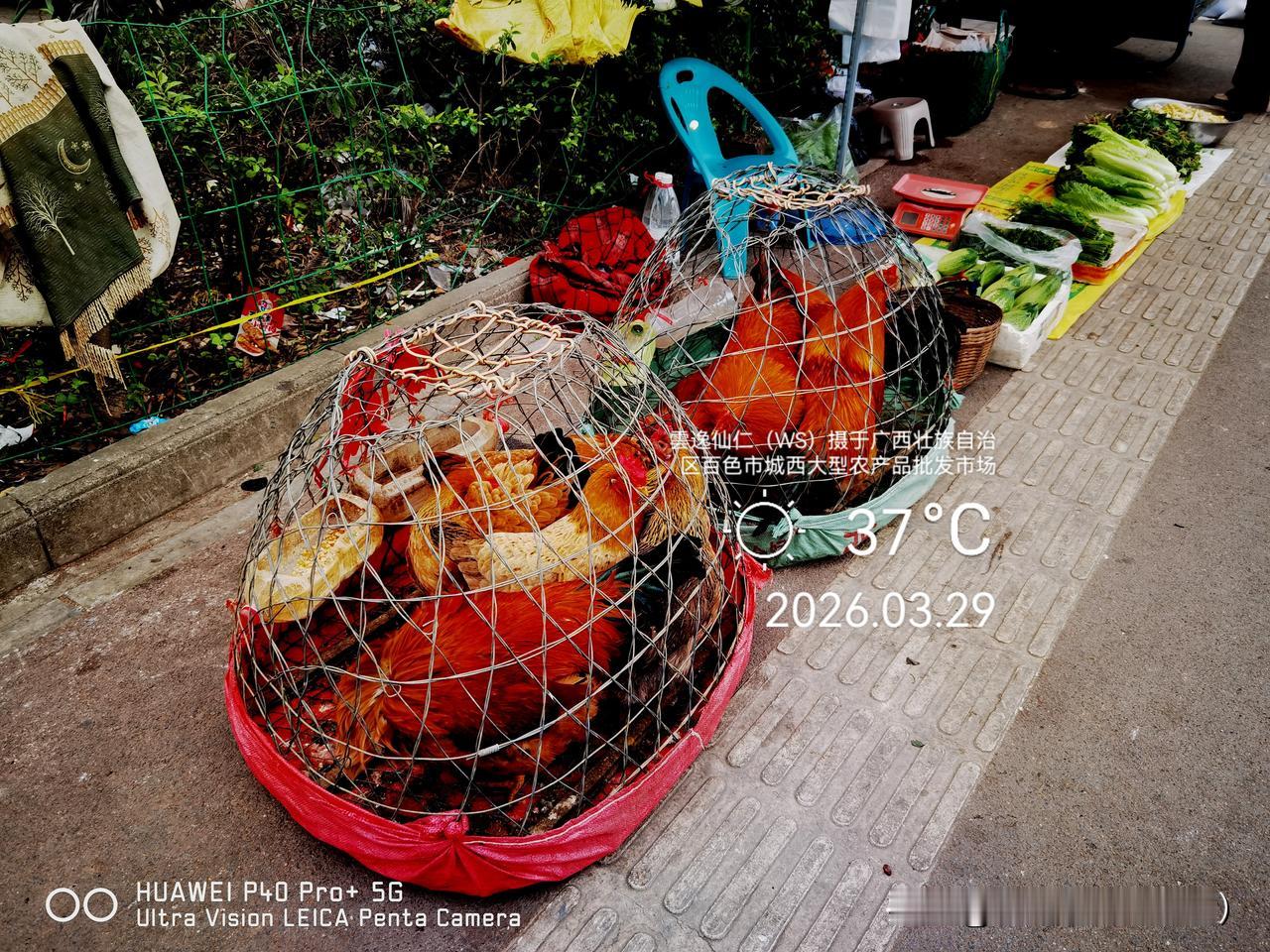 旅居生活记录(9430)广西壮族自治区百色市(115)逛城西大型农产品批发市场1:猪尾、桑椹装盒、鸡笼等。