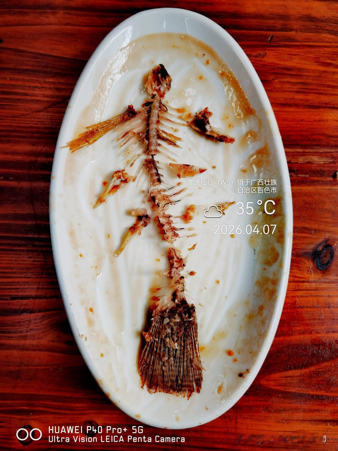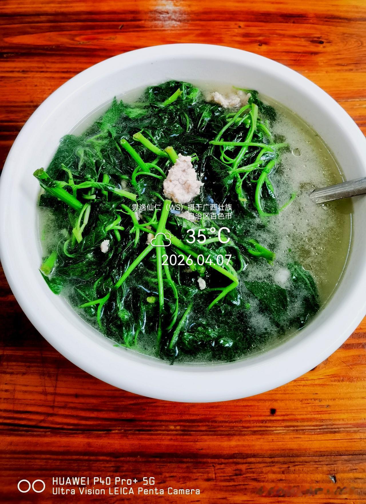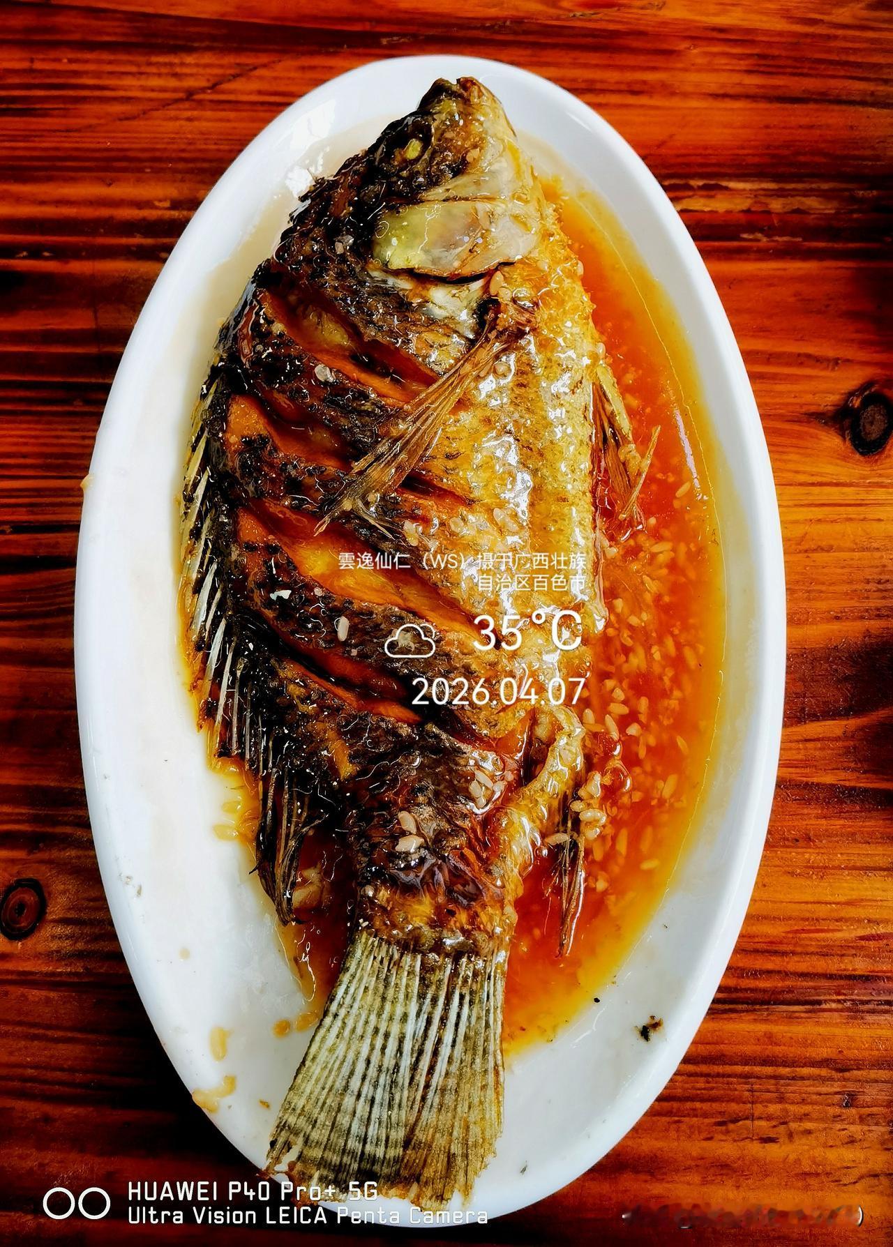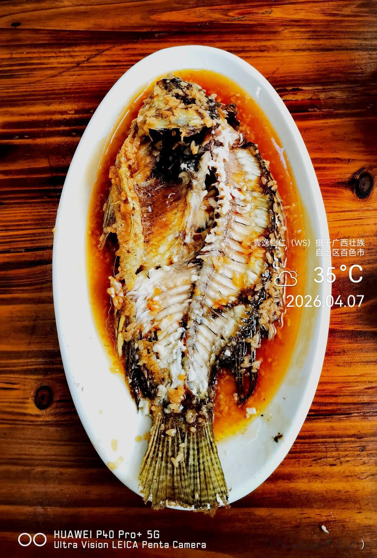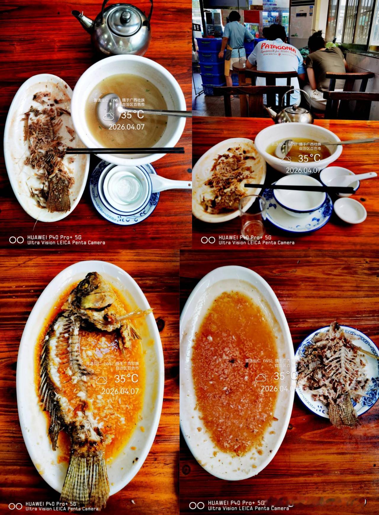 旅居生活记录(9435)广西壮族自治区百色市(120)品尝小吃35:甜酒鱼(30元1条)、碎肉野菜(白花菜)汤(18元1小盆)。