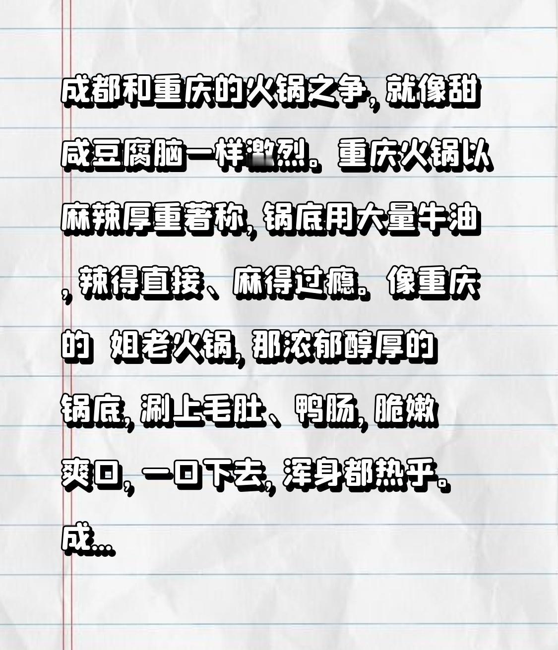 成都和重庆的火锅之争,就像甜咸豆腐脑一样激烈。