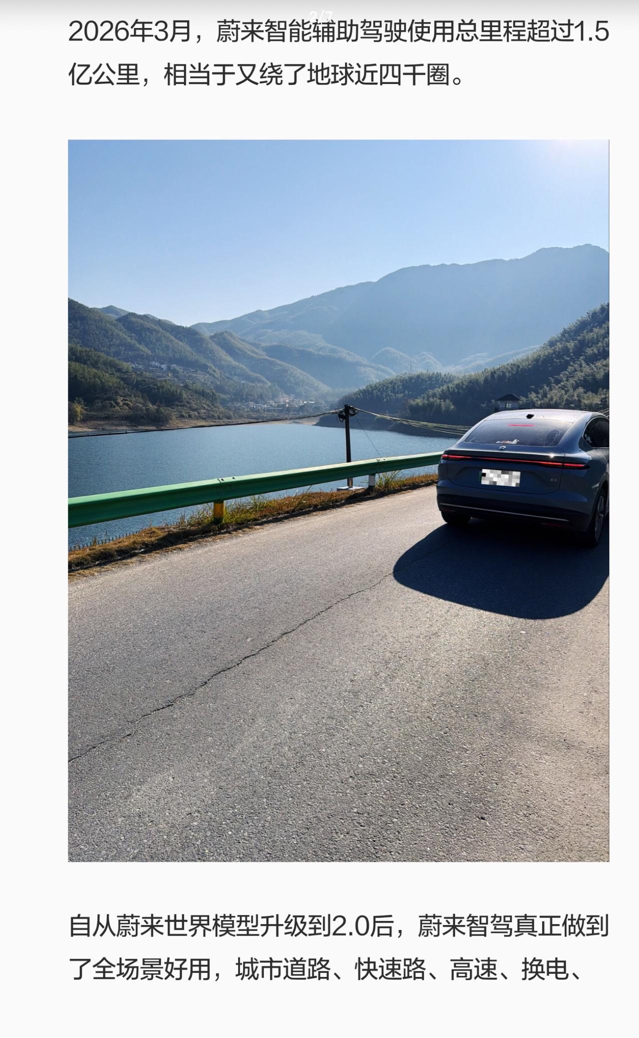 蔚来3月份智驾累计里程能绕地球近四千圈