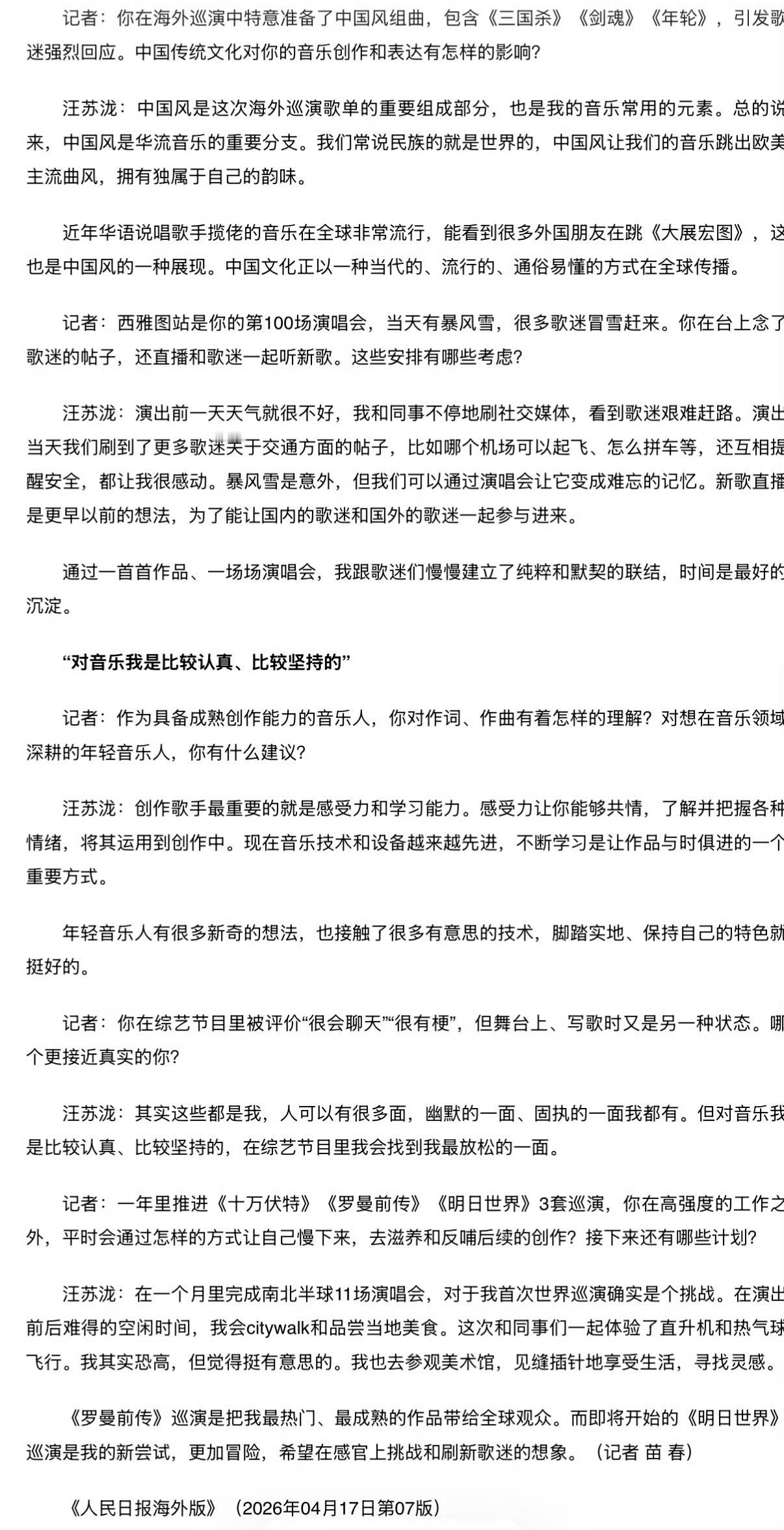 人民日报海外版对话汪苏泷🎶汪苏泷说好的音乐没有语言门槛争气的哥哥🥹🥹🥹言
