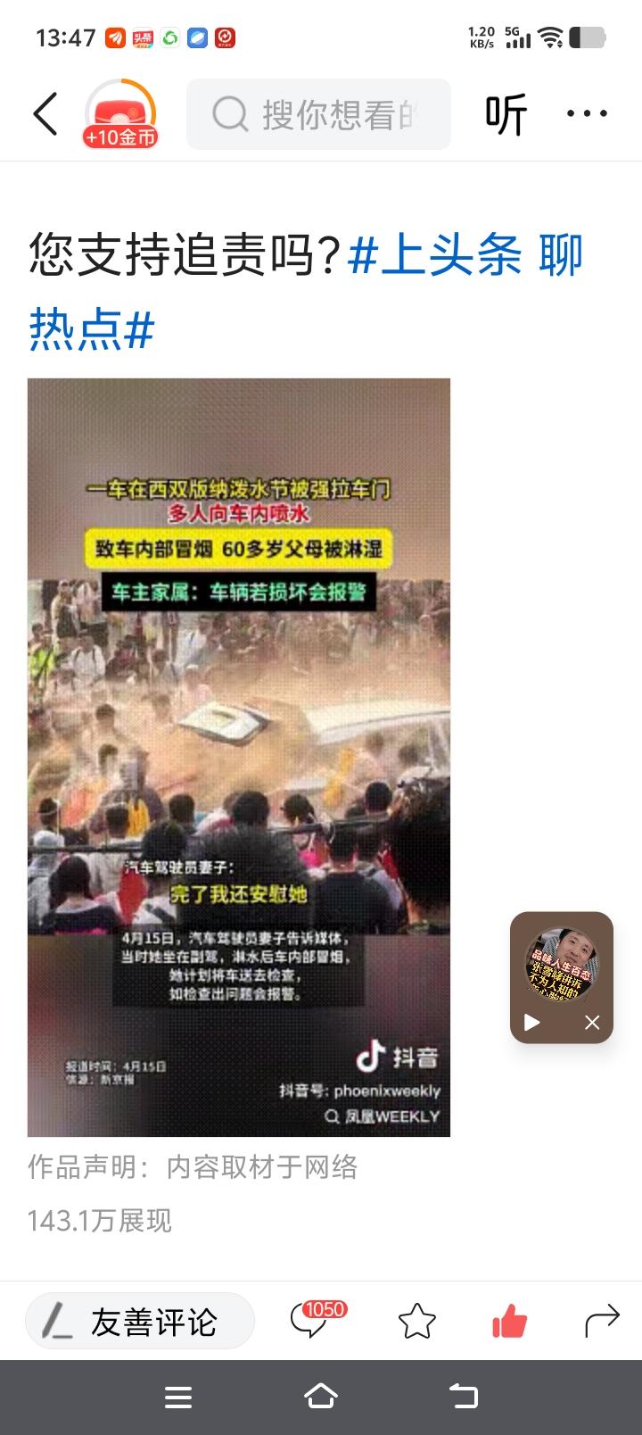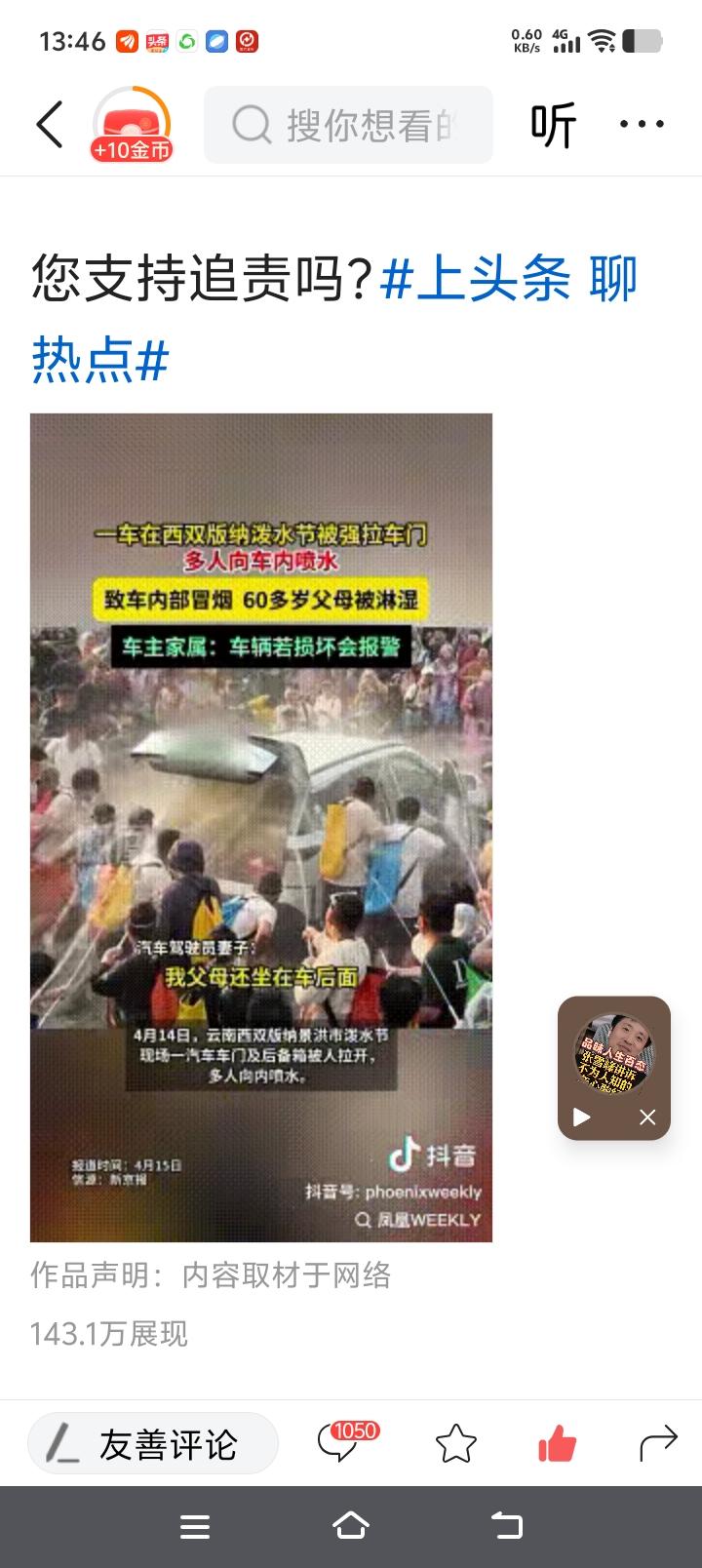 4月14日,孙女士开车带家里老人出去吃饭,途径泼水节热闹路段,结果遭遇高压水枪一顿猛喷!