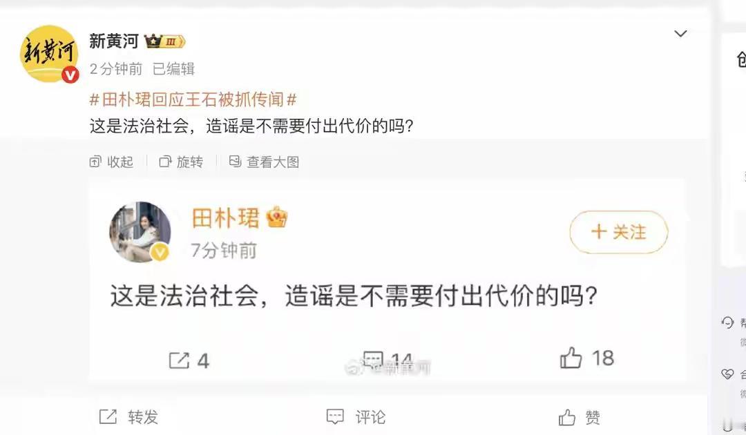 4月12号,就在今天,网上有人发布“王石被抓…”,迅速引发各种猜想,紧接着田朴珺强力护夫,王石也发表声明,让事件热度持续上升,迅速霸占热点头条!