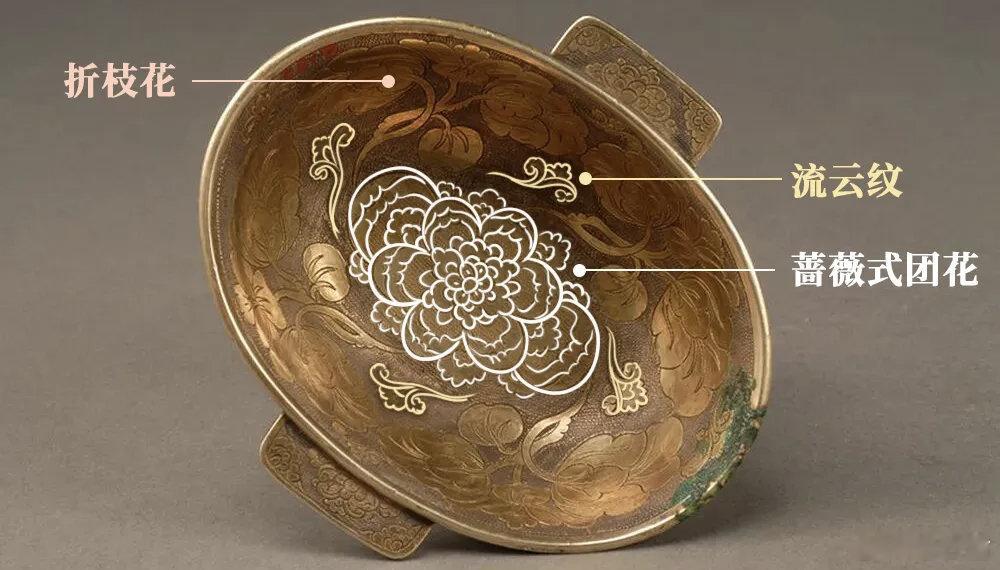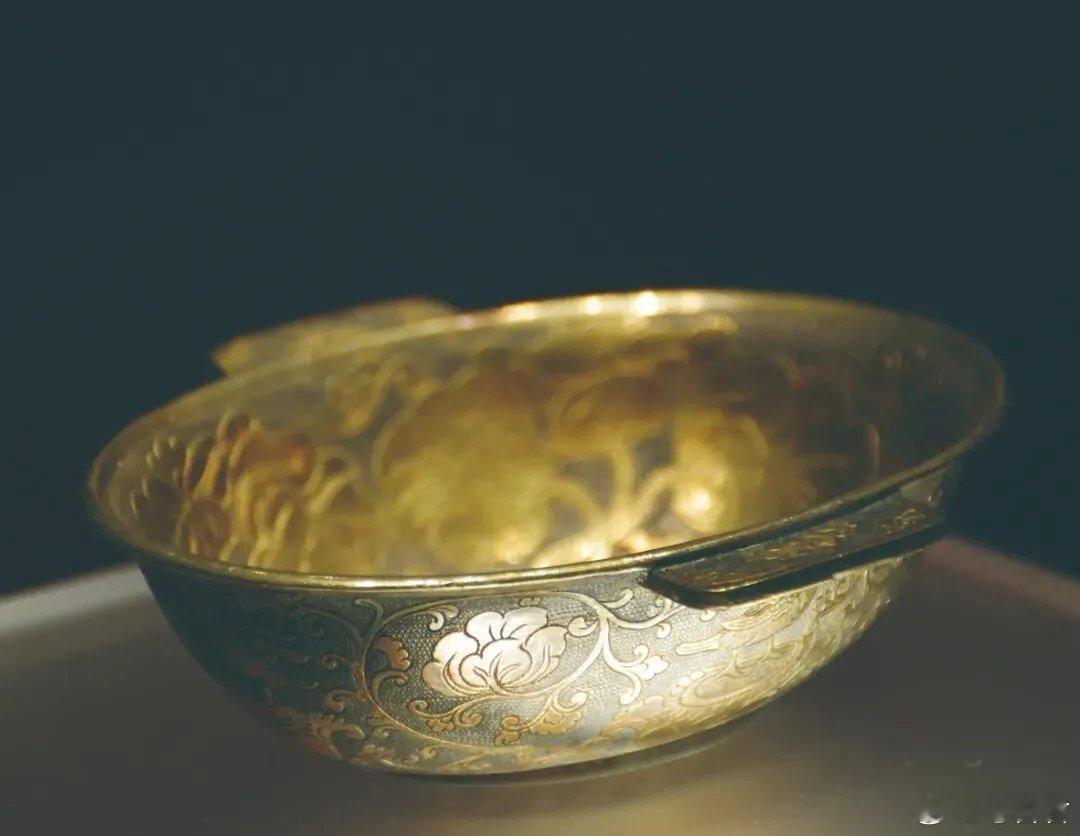 文物科普羽觞 唐代鎏金蔓草鸳鸯纹银羽觞,一对藏于陕西历史博物馆。羽觞即耳杯,因两侧半月形双耳如羽翼得名,战国至隋唐盛行。此杯内外满饰鱼子纹,内底蔷薇团花,外壁錾刻鸳鸯、鸿雁伫立莲台,花叶流云铺陈,仿佛将整个春天酿入杯中。工艺集锤揲、錾刻、焊接、鎏金于一身,金光璀璨、银质温润,尽显唐代匠人巧思。李白诗云“飞羽觞而醉月”,千年后举杯,仍可共饮一盅春光。