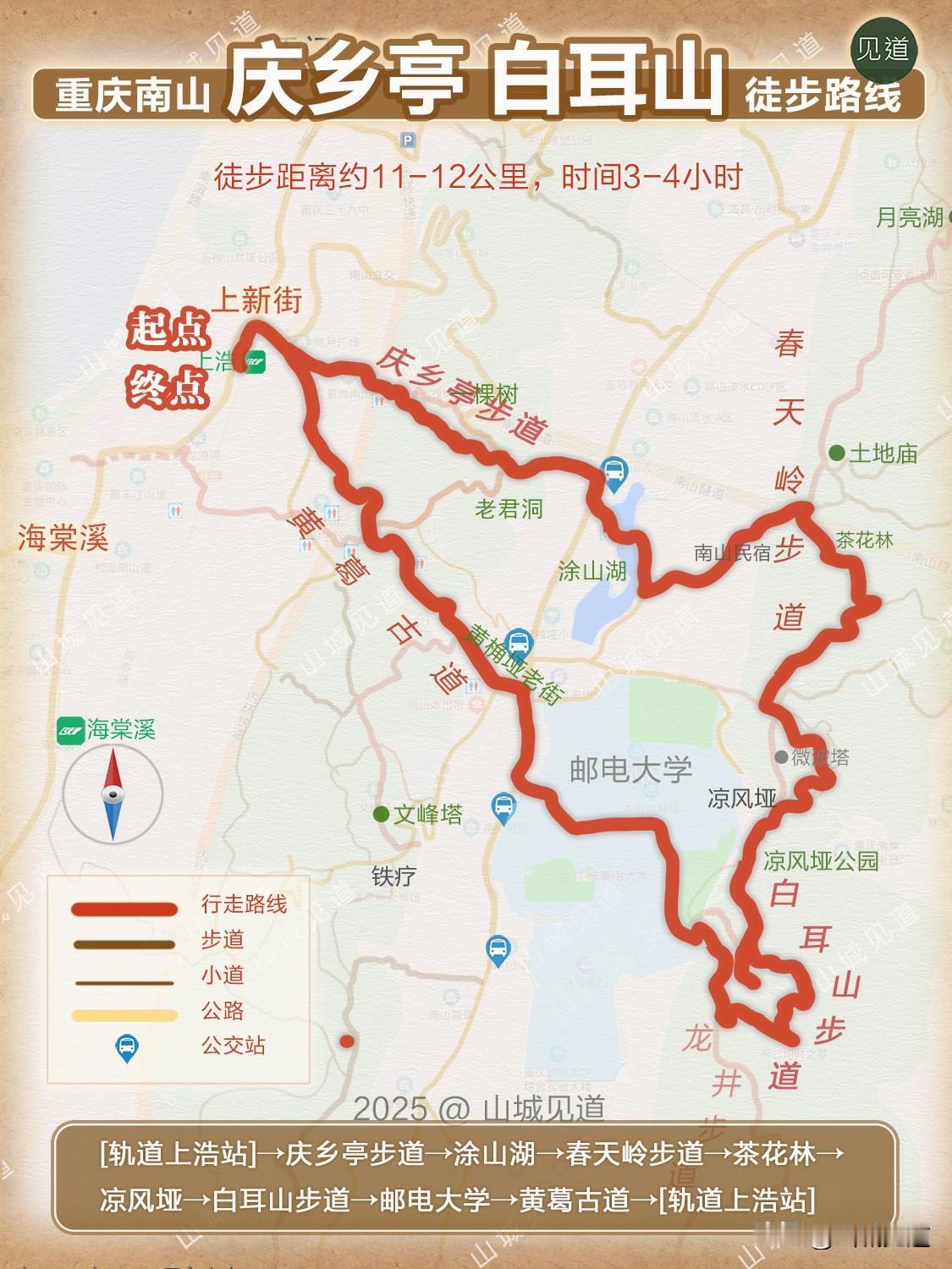 (3)轨道上浩站——庆乡亭步道——春天岭步道——白耳山步道——黄葛古道/11公里