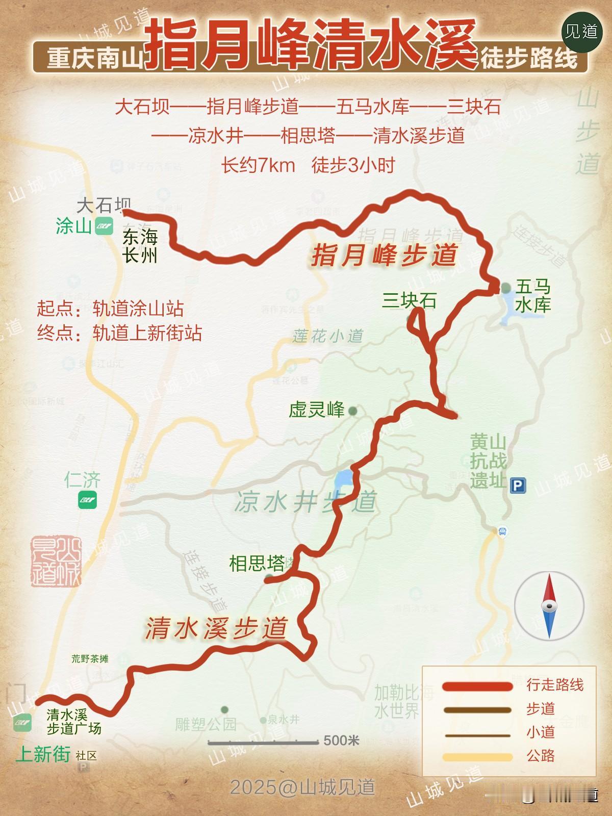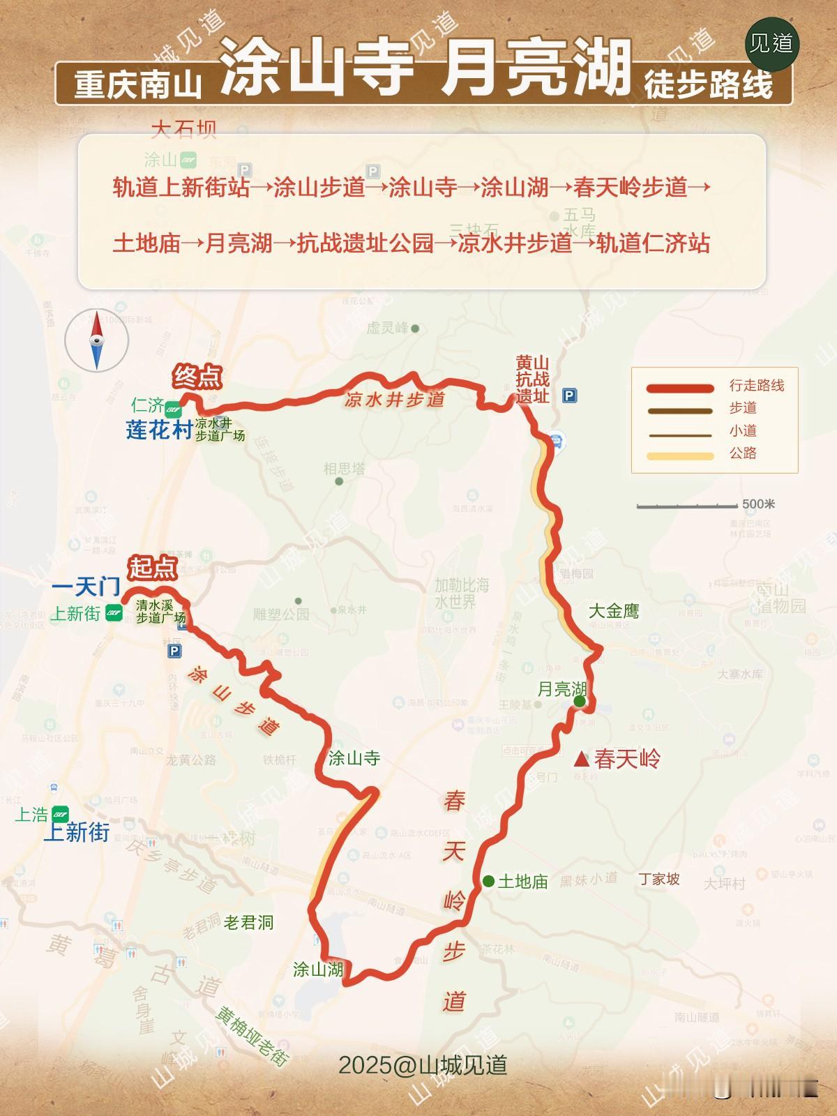 (2)轨道上新街站——涂山步道——春天岭步道——凉水井步道/9.5公里
