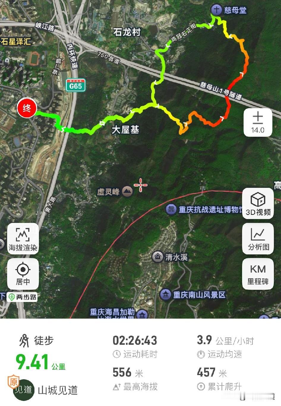 周末爬山,重庆南山。 南岸大石坝轨道涂山站起,指月峰步道进山,走上连接道进入慈母