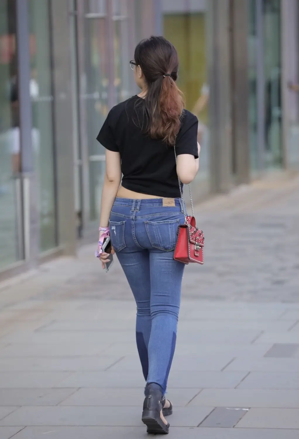 牛仔裤穿搭 街拍牛仔裤穿搭 紧身牛仔裤