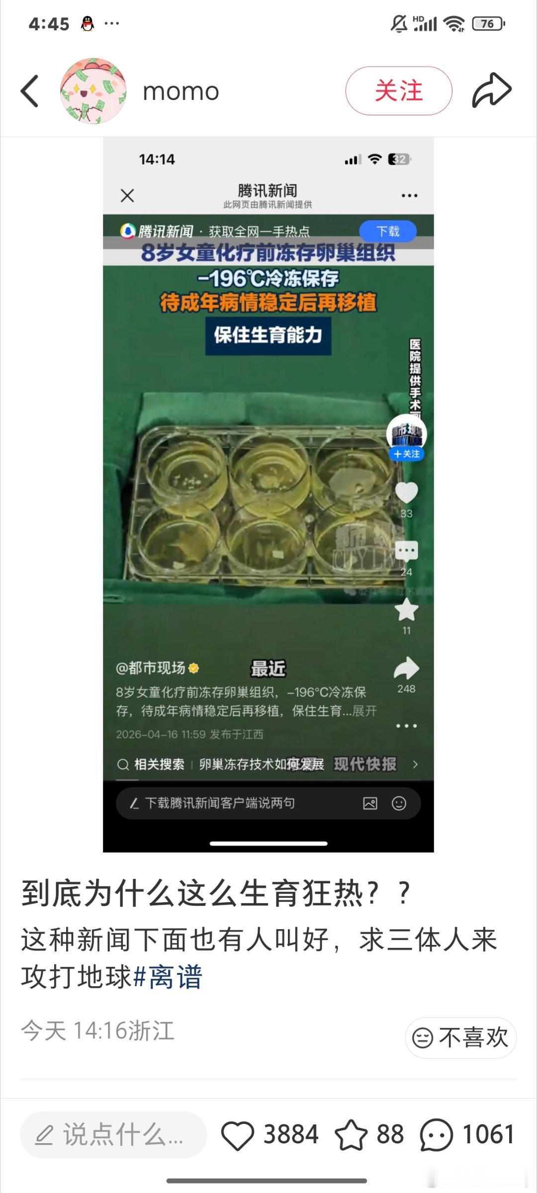 无敌了,好好一个治病,小红书热评如此表示。这么仇恨生育那建议自己先做子宫切除