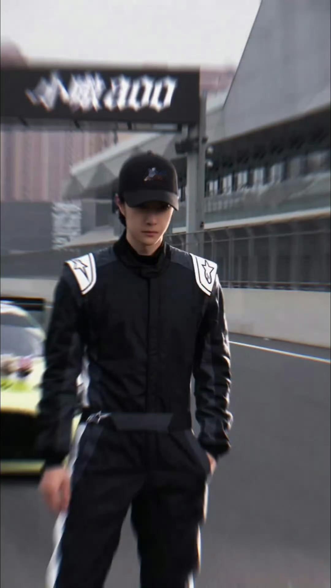 王一博黑色赛车服造型 黑色赛车服配85号,这画面已经成了王一博的经典形象。不是明
