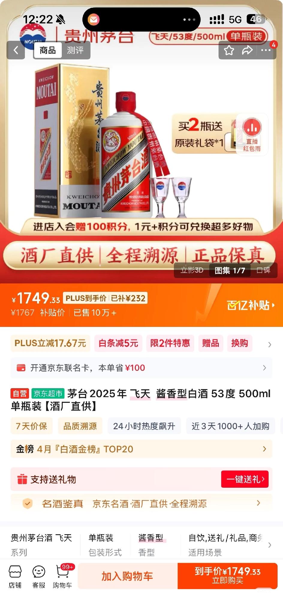 按出厂价1169元/瓶来算: