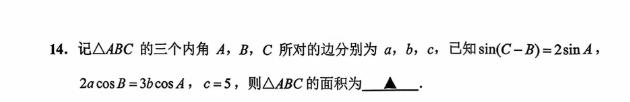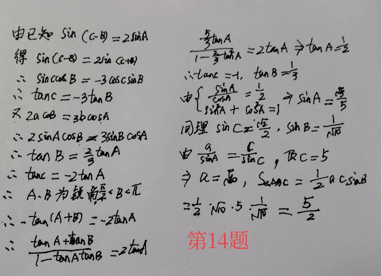 第14题考查了三角变换,正弦定理,方程与方程组。