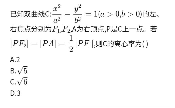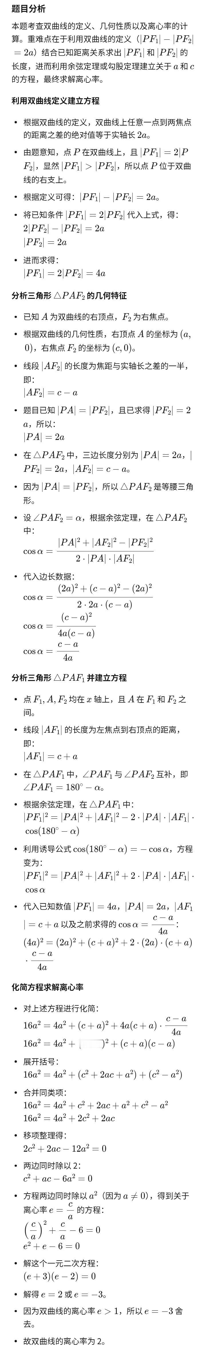 第8题考查了双曲线的定义,余弦定理,以及方程思想,关键找a,c之间的关系。