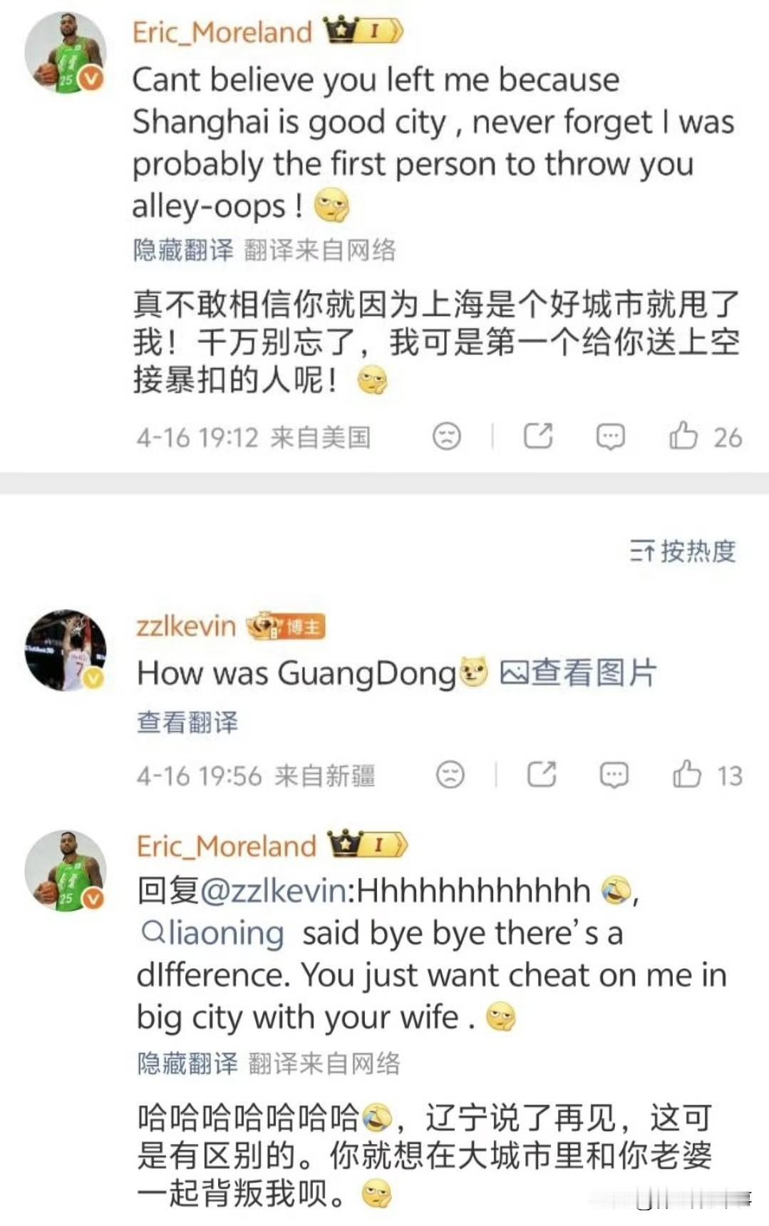 莫兰德:那能一样吗?是辽宁先跟我说拜拜的,你倒好了,跟着老婆跑去大城市了。